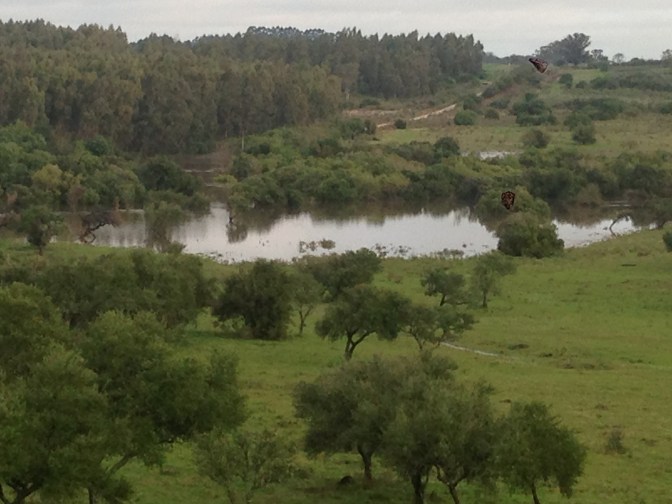 Heute, am Montagmorgen, haben wir von unserem Hügel wieder einen schönen Ausblick auf den großen See, der sich unten in der Flusssenke gebildet hat. Das wird einige Tage dauern, bis die Brücke wieder passierbar ist.