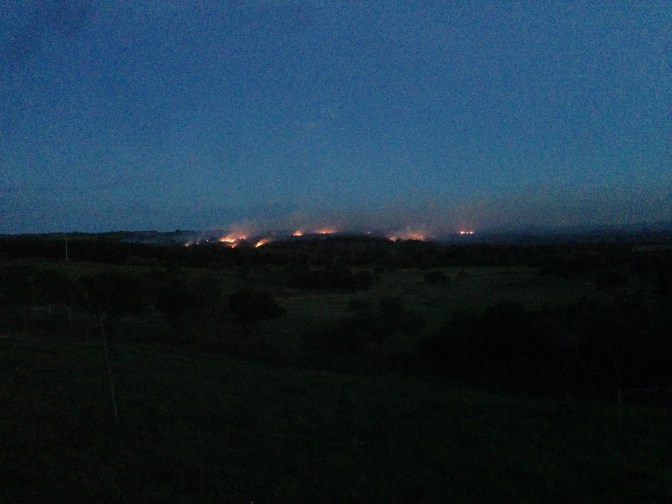 Die Äste werden von Holzsammlern, soweit verwertbar, kleingesägt und verkauft. Der große Rest bleibt zum Trocknen erst einmal liegen und wird dann verbrannt. Um das Land für einen weitern Anbau wieder nutzbar zu machen, muss es gesäubert werden, und das erledigt das Feuer. Tagelang ziehen riesige Rauchschwaden über das Land, und wir sind froh, wenn der Wind aus unserer Richtung kommt und wir nicht eingenebelt werden. In der Nacht bietet sich ein schaurig schönes Schauspiel, wenn die großen Feuer den Himmel orangerot erleuchten.