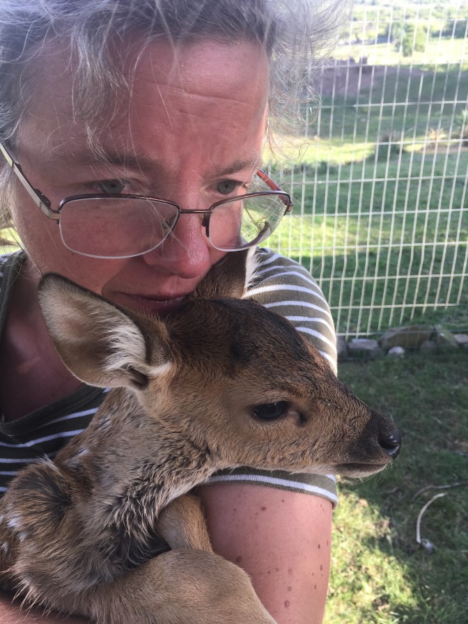 Sie erinnert wirklich an Bambi aus dem Zeichentrickfilm. Die langen dünnen Beinchen sind so zart und zerbrechlich, funktionieren aber wie Sprungfedern, wenn sie aus dem Sitzen plötzlich hochschnellt und davon springen will. Es wird einige Zeit dauern, bis sie sich eingewöhnt hat, aber wir sind auf einem guten Weg. Sobald sie sich heimisch fühlt, bekommt sie dann auch noch ein kleines Böckchen an die Seite gestellt. Bei Zweien wäre ich überfordert, das habe ich ganz schnell eingesehen. Es ist eine neue Herausforderung, die ich ganz ohne Hilfe aus dem Internet stemmen muss. Über die Aufzucht von Hirschen gibt es keine Informationen, das ist Insider-Wissen aus Tierparks und Zoos. Und das haben auch die Uruguayos nicht, obwohl sich einige in der Aufzucht versuchen. Aber ich bin guter Dinge, dass es klappen wird!