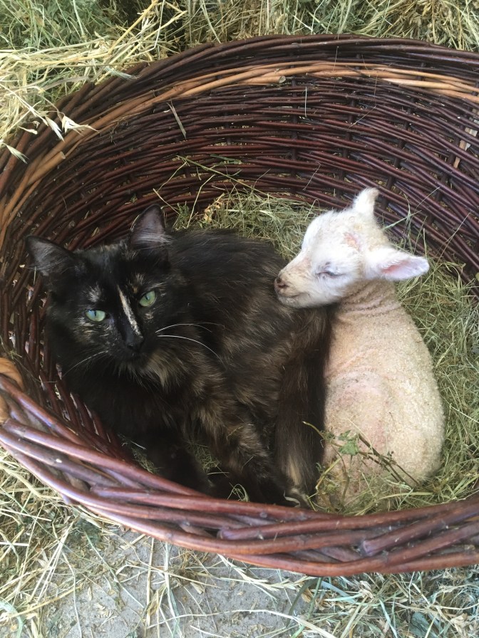Die Lämmchen sind alle topfit. Allerdings sind drei Kinder für eine Schafmama zu viel. Also haben wir das Kleinste gleich von ihr getrennt, damit alle drei eine gute Überlebenschance haben. Unser kleiner „Ciento“ fühlt sich bei der Katze sehr wohl, die ihn gleich abgeleckt und liebevoll umsorgt hat. Noch ist er etwas kleiner als seine Pflegemama. Aber er hat einen ordentlichen Appetit, trinkt die Milch aus der Flasche und es wird nicht lange dauern, bis er größer ist als sie.