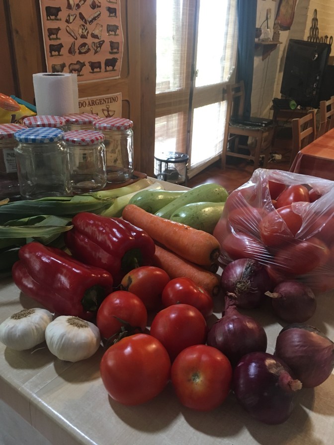 8 kg Gemüse wurden geputzt und klein geschnibbelt. Einiges kam noch aus dem eigenen Gemüsebeet dazu. In Olivenöl angebraten, gekocht und in Schraubverschlussgläser abgefüllt. So habe ich wieder 9 Mahlzeiten im Vorrat. Nudeln oder Kartoffeln dazu, fertig.