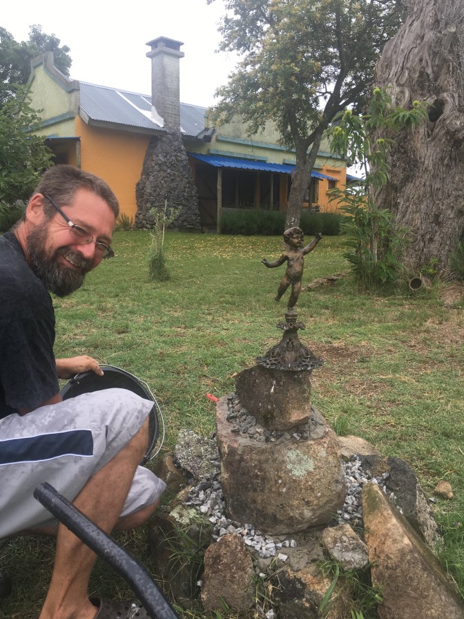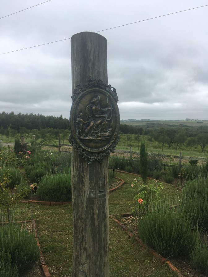 Auf dem Flohmarkt in Montevideo haben wir etwas „Kitsch“ erstanden. Schöne Sachen aus Messing, gegossene Platten mit antiken Allegorien, Lampenständer und Kerzenhalter. Wunderschöne kleine Hingucker, die sich perfekt in den Park integrieren.
