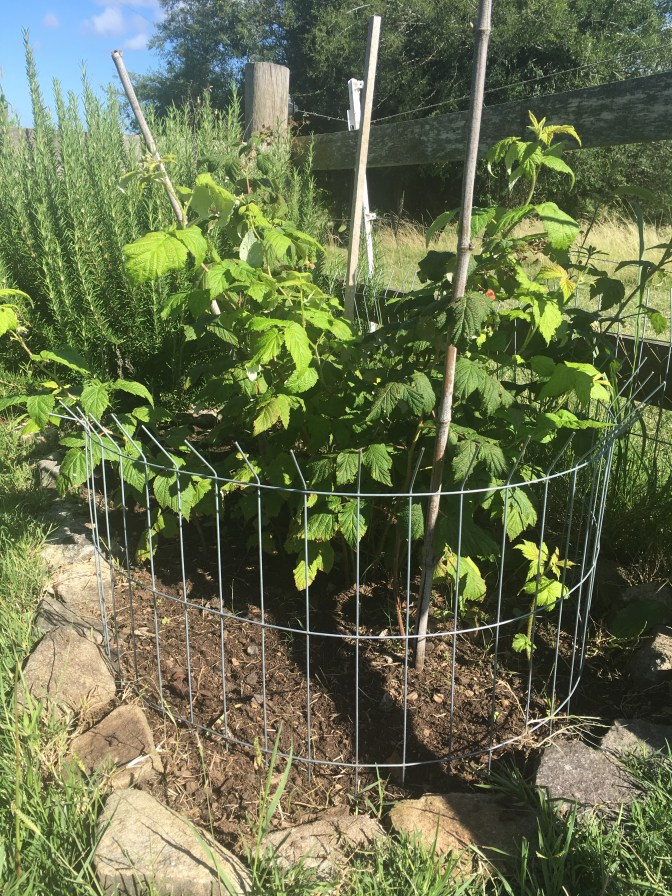 Auf der anderen Seite wachsen Himbeersträucher. Vor anderthalb Jahren haben wir zwei Pflänzchen in einem Gartenmarkt entdeckt. Die sind hier sehr selten und wir haben die seitdem auch nie mehr wieder gesehen. Inzwischen kommen viele neue Triebe aus der Erde. Die werden ausgegraben und an neuer Stelle eingesetzt, sodass sich unser Himbeerbeet mit den Jahren stetig vergrößert. Die leckeren Beerchen werden von uns gerne genascht.