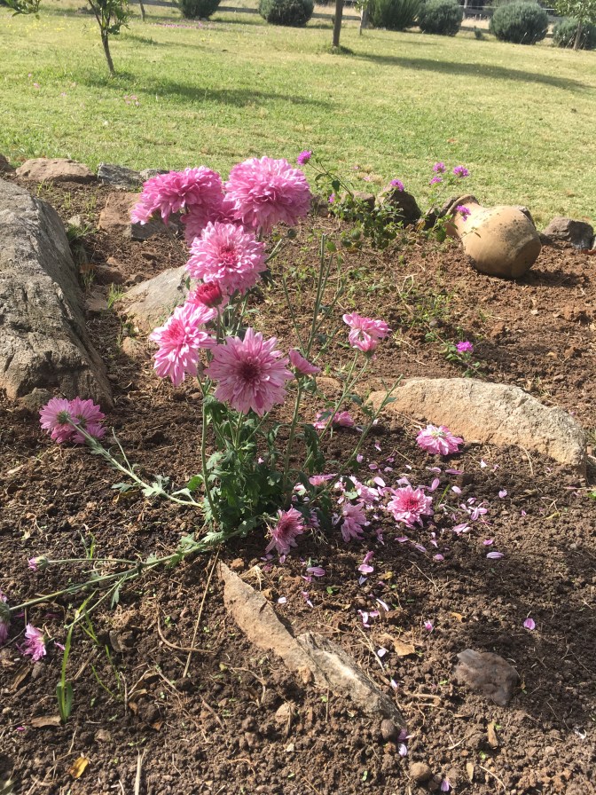Ich habe einige Astern gekauft und im Park verteilt. Es sind herrliche Farbtupfer und sie passen perfekt zum bunten Laub der Büsche. Wenn da nur die Ameisen nicht wären, die momentan ihre Wintervorräte in ihrem Bau auffüllen. Und sich dabei an meinen Blumen bedienen ! Die Rosen sind ja mittlerweile alle abgefressen, da kommen ihnen die Astern gerade recht! Und wie raffiniert die vorgehen ! Die Blütenköpfe werden vom Stiel getrennt, damit sie sie ganz bequem am Boden zerlegen und abtransportieren können.