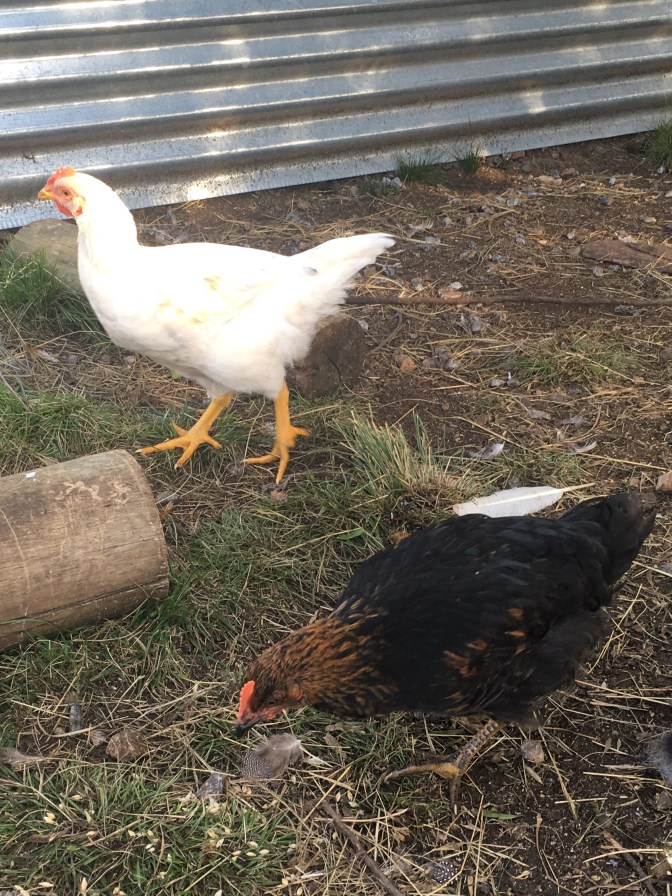Unsere beiden Küken sind nun 10 Wochen alt und haben sich zu prachtvollen Hennen entwickelt. Die goldenen Sprenkel im Gefieder sind ein Erbe von ihrem Papa, unserem bunten Hahn.