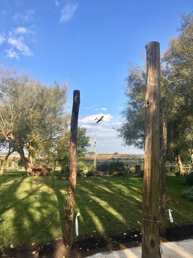 Heute hatten wir ein Erlebnis der besonderen Art: am Nachmittag kam ein kleines Sportflugzeug angeflogen und flog relativ niedrig, zwischen zwei- und dreihundert Metern, über den südlichen Teil unseres Grundstückes, immer im Flusstal entlang. Es flog eine Acht, immer hin und her auf einer Länge von etwa zwei Kilometern. Nach ungefähr zehn Minuten war der Spuk vorbei, wir wunderten uns sehr über die ungewöhnliche Lärmbelästigung und gingen wieder unserer Arbeit nach.