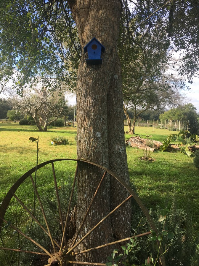 Obwohl es laut Kalender immer noch Winter ist, haben einige Vögel schon angefangen zu brüten. Wir haben vorgestern sogar unter einem Baum eine Eierschale gefunden. Also ist da ein kleiner Piepmatz geschlüpft. Einige der Vögel bauen Nester, andere brüten in Baumhöhlen. Wir sind schon sehr gespannt, ob sie unsere Häuschen annehmen. Vogelhäuser in den Gärten sind hier nicht üblich. Wir haben die drei Exemplare aus Deutschland mitgebracht und in einem leuchtenden Blau gestrichen. Jetzt müssen die Untermieter nur noch kommen 😊