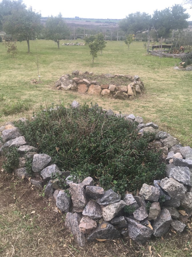 Die Pfefferminze hat schon ordentlich getrieben, die Wurzeln haben die Steinumfassung überwunden und die Pflänzchen sprießen sogar aus der Wiese. Diesem Wildwuchs muss Einhalt geboten werden. Es soll ja alles seine Ordnung haben.