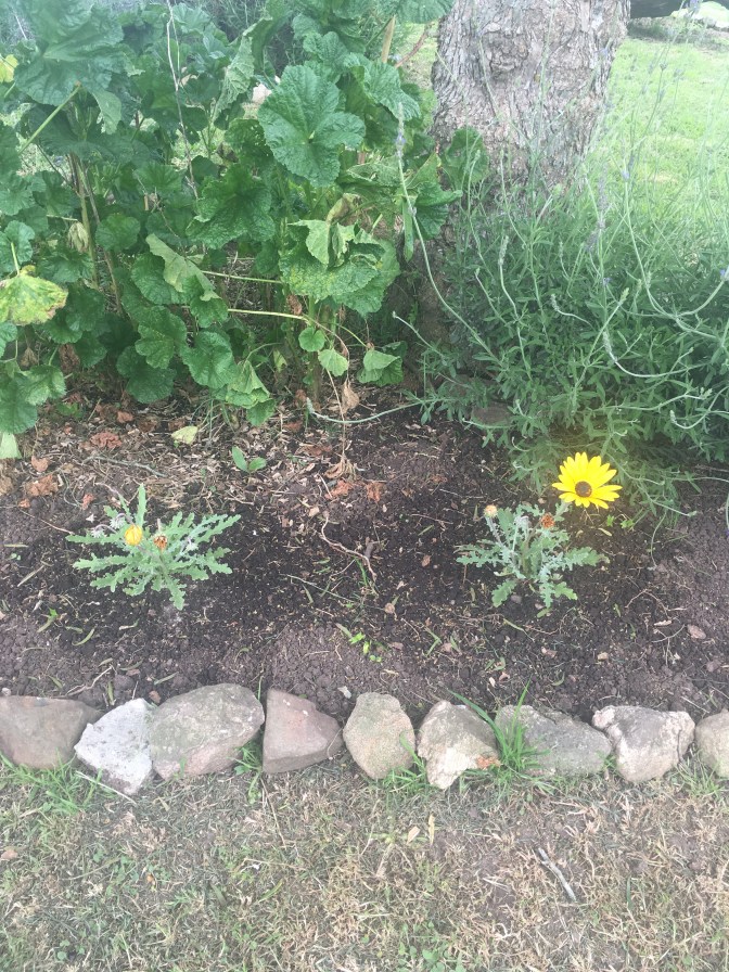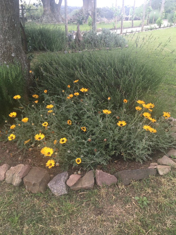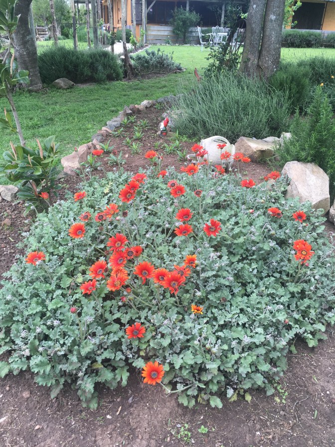 Ich habe die Gerbera inzwischen an vielen Stellen im Park verteilt. Sie nehmen mit der Zeit viel Platz ein, aber wo sie wachsen, muss ich schon kein Unkraut mehr rupfen. Außerdem sind sie herrliche Farbtupfer, die den Park immer bunter machen.