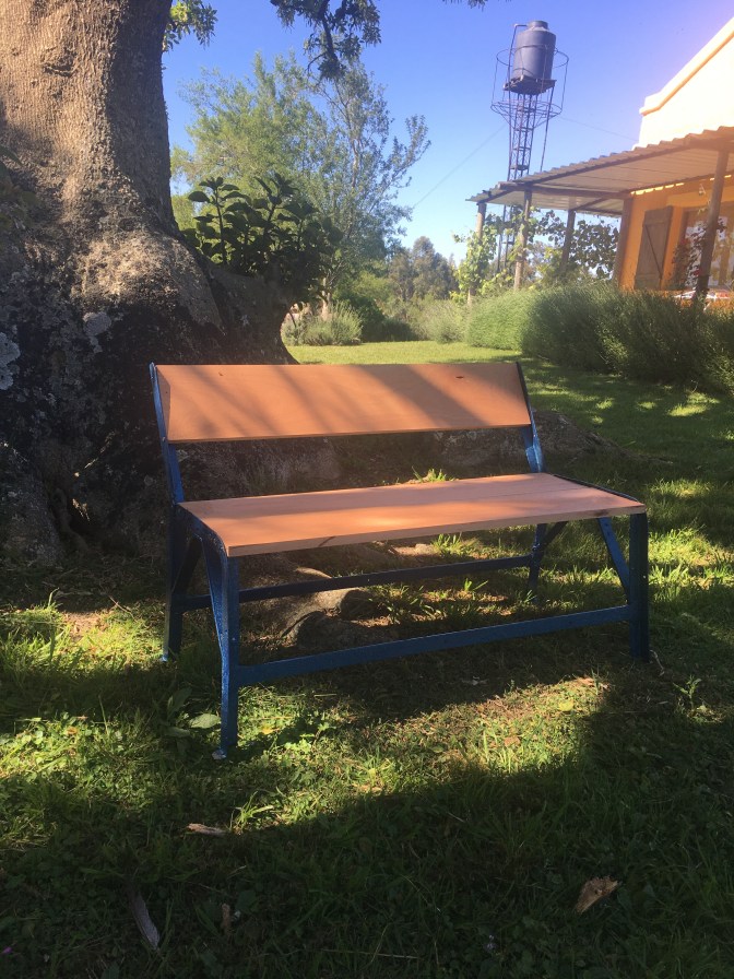 Mit einem Topf Farbe und neuen Brettern haben wir nun im Handumdrehen eine neue Bank 😁