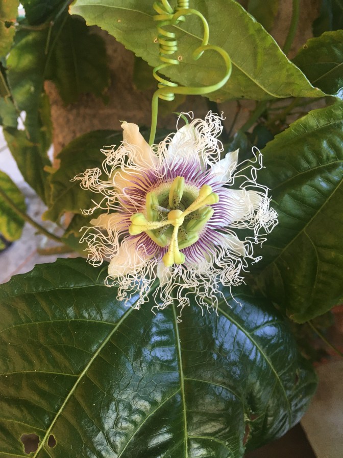 Im letzten Jahr haben wir fünf Früchte geerntet, in diesem Jahr werden wir sie kaum zählen können!! Sie blüht unermüdlich und wenn auch nicht aus jeder Blüte eine Maracuja entsteht; mit der Hälfte wären wir mehr als zufrieden 😁