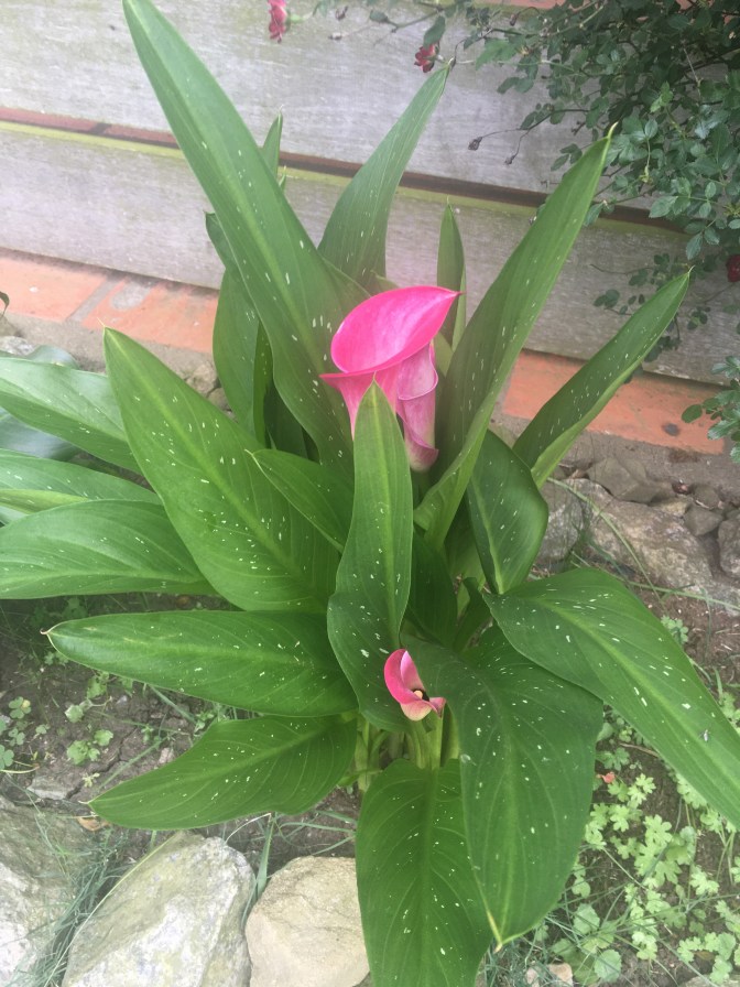 Unsere farbigen Calla, die wir im letzten Jahr gekauft hatten, und von denen wir dachten, sie seien eingegangen, haben nun doch ausgetrieben. Die erste zeigt stolz ihre rosafarbenen Blüten; ein absolutes Prachtstück!!!!