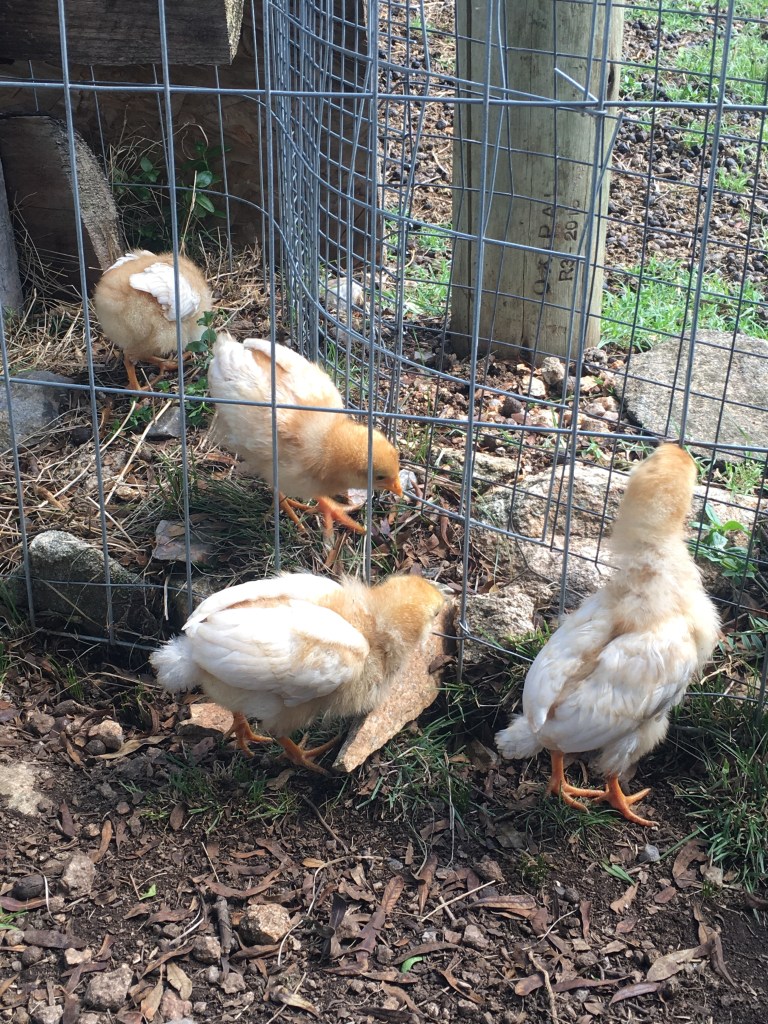 Meine kleinen Küken sind ordentlich gewachsen. Aus den flauschigen Federbällchen sind schon ansehnliche Hühnchen geworden. Für den Käfig, indem sie die letzten Wochen den Tag verbrachten, schienen sie mir mittlerweile zu groß. Sie brauchten mehr Auslauf. Wir haben die Möglichkeit, vom Hühnergehege etwa 12 m2 abzustecken. Hier hinein kamen sie und hier können sie nach Herzenslust scharren.