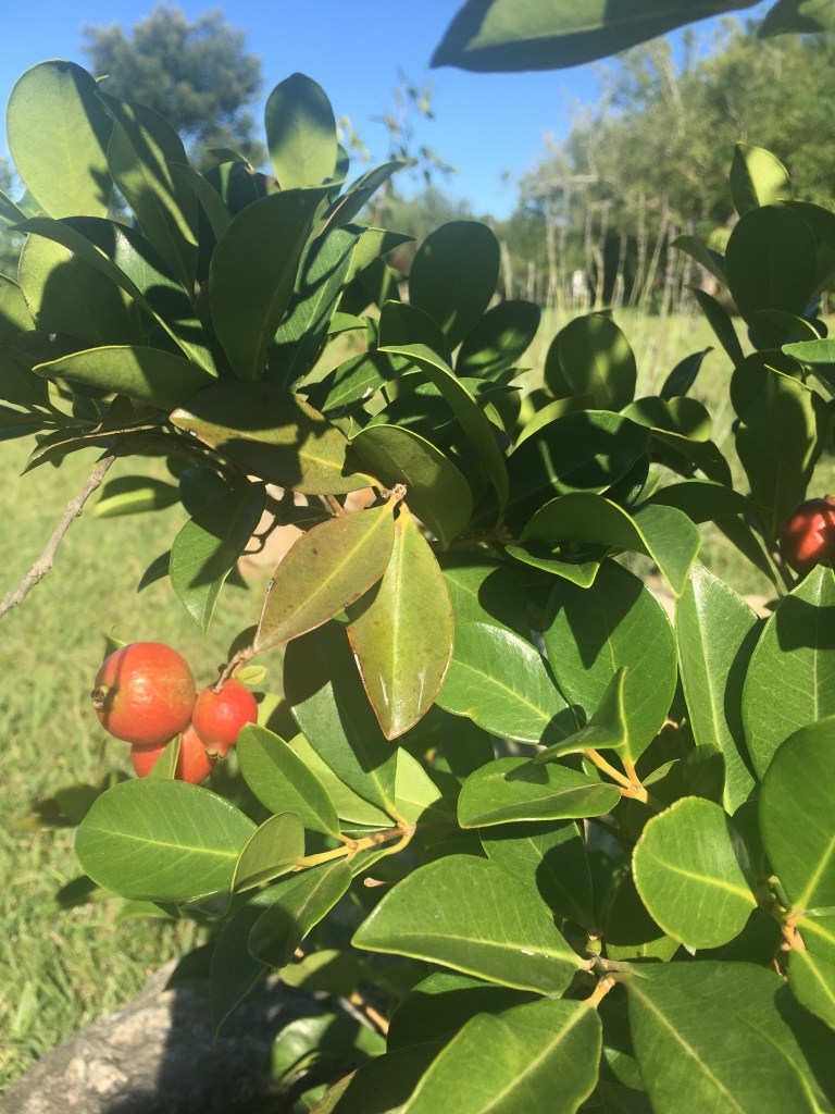 Der Busch hat neben dem Obst viele weitere Vorteile: da er einheimisch ist, hat er absolut keine Fraßfeinde. Das Laub wird nicht abgefressen und auch die Früchte bleiben hängen, bis sie reif sind. Er ist an das Klima adaptiert, verträgt die Fröste im Winter ebenso wie die heißen Winde und Temperaturen im Sommer. Er braucht kaum Wasser und ist damit absolut pflegeleicht. Wir haben uns deshalb so nach und nach neun Büsche gepflanzt und es werden bestimmt noch mehr werden. Jetzt können wir uns beim täglichen Spaziergang am Abend durch den Park die gesunden Vitamine pflücken. Da sie nicht alle zur gleichen Zeit reif werden, haben wir noch eine Weile davon.