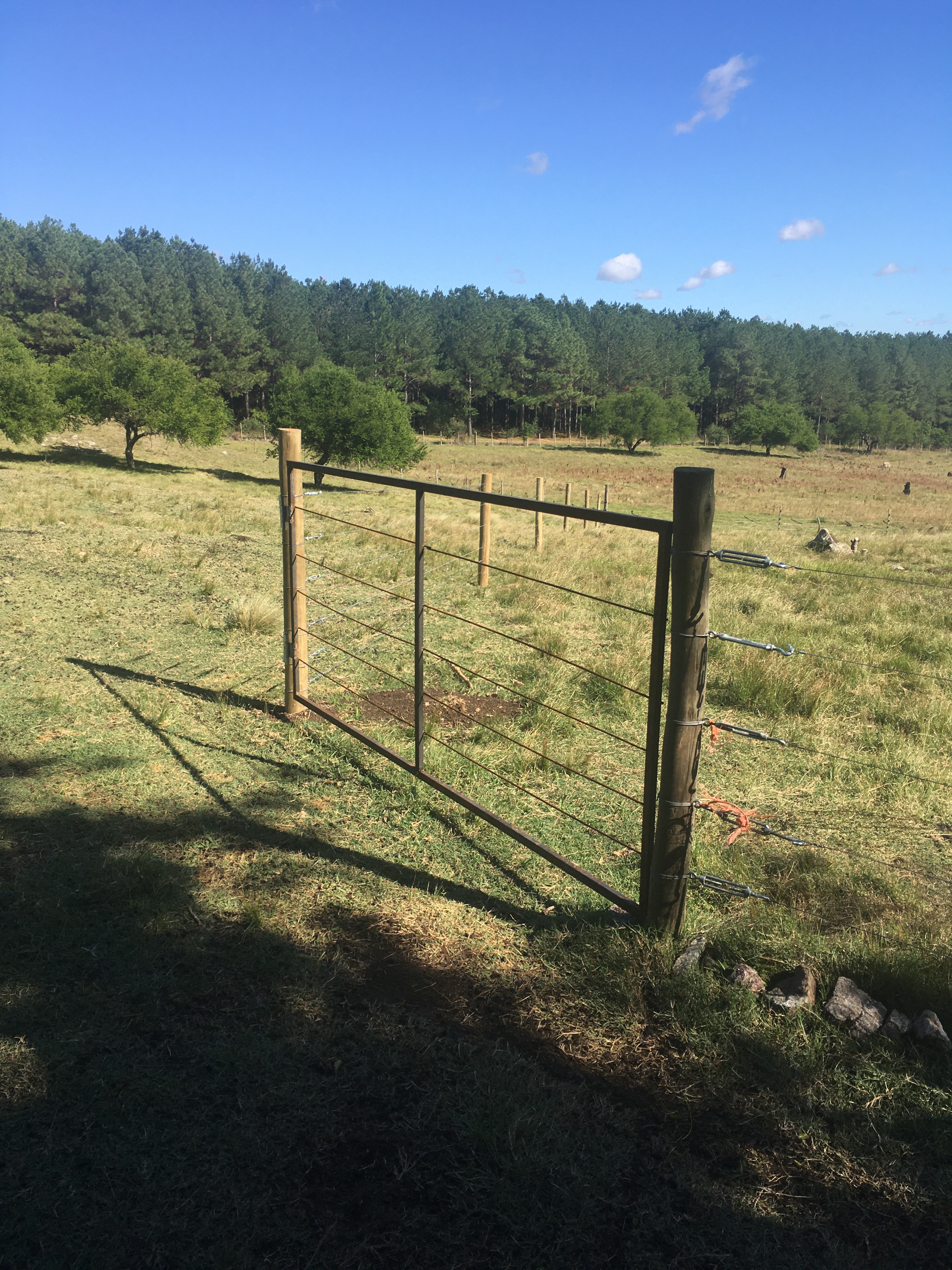 Wir haben die große Nachtweide noch einmal geteilt. Daniel hat einen neuen Zaun gezogen und dazu ein Eingangstor geschweißt. Das Tor ist so angebracht, dass wir nun die Schafherde, wenn sie von draußen auf der Weide kommt, entweder nach rechts oder links auf die Nachtweide leiten oder bei Bedarf die Herde teilen können, ohne die Tiere aus der Ruhe zu bringen oder gar jagen zu müssen.