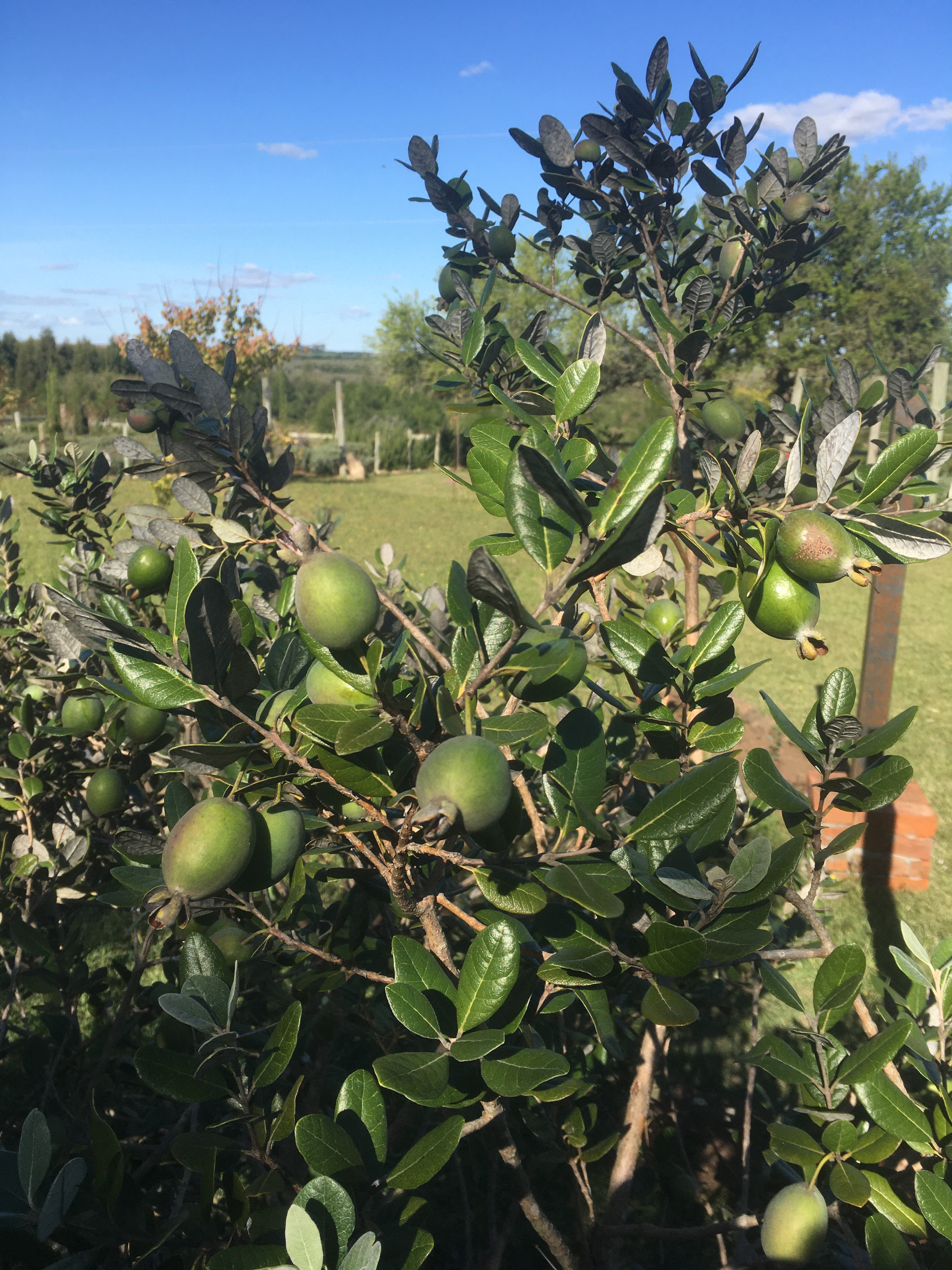 Guayabo ( sprich: gua schabo) nennt es sich und ist eine einheimische Guavenart. In einigen Gegenden, z. B. in den Urwäldern Brasiliens, wächst es wild. In Uruguay kommt der Busch langsam in Mode und wird gegenwärtig in den Gartenmärkten verkauft. Auch hier, wie bei den schon vorgestellten Arazá, haben wir es mit einer geballten Ladung von Vitaminen, Mineralstoffen und Antioxidanzien zu tun. Die einheimische Bevölkerung steht dem ganzen noch ziemlich skeptisch gegenüber. Getreu dem Motto: „Was der Bauer nicht kennt, frisst er nicht,“ bleiben die kleinen Früchte in den Obstläden liegen.