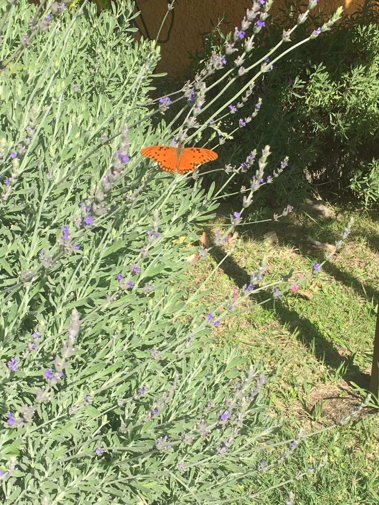 Die Lavendelbüsche haben noch einmal Blüten angesetzt; Glück für die Schmetterlinge, ansonsten gibt es keine Blüten mehr, nur buntes Laub, das weithin leuchtet.