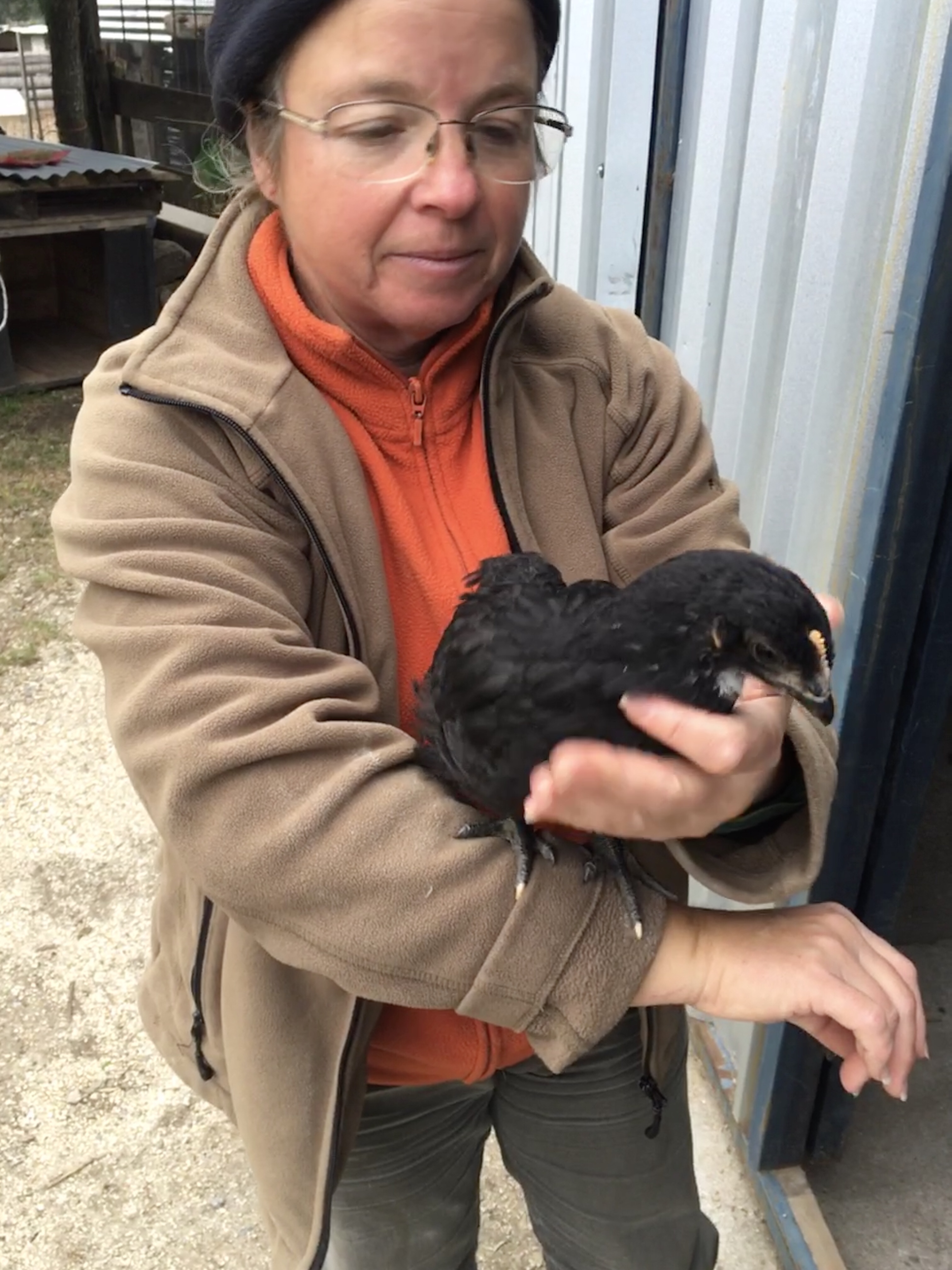 Meine Küken sind auch ordentlich gewachsen. Seit zwei Wochen sind sie mit im Gehege. Die erste Zeit nur tagsüber. Die Nacht haben sie im Galpon verbracht, nachdem sie für die Dusche im Haus zu groß und wuselig geworden waren. Jetzt übernachten sie mit den Hühnern im Hühnerstall. Da sie keine Glucke haben, die sie in die Gesellschaft eingeführt hat, haben sie es momentan etwas schwer, sich gegen die Großen durchzusetzen. Aber sie schlagen sich tapfer und da sie zu viert sind, wird es nicht hat mehr lange dauern, und sie können sich gehen die anderen Hennen behaupten. Das fünfte und kleinste Küken ist gleich nach drei Tagen, nachdem wir sie gekauft hatten, gestorben. Die anderen vier sind wunderschöne, kräftige Tiere mit glänzenden schwarzen Federn. Zwei von ihnen bekommen goldene Sprenkel im Gefieder, das werden ganz besondere Schönheiten.