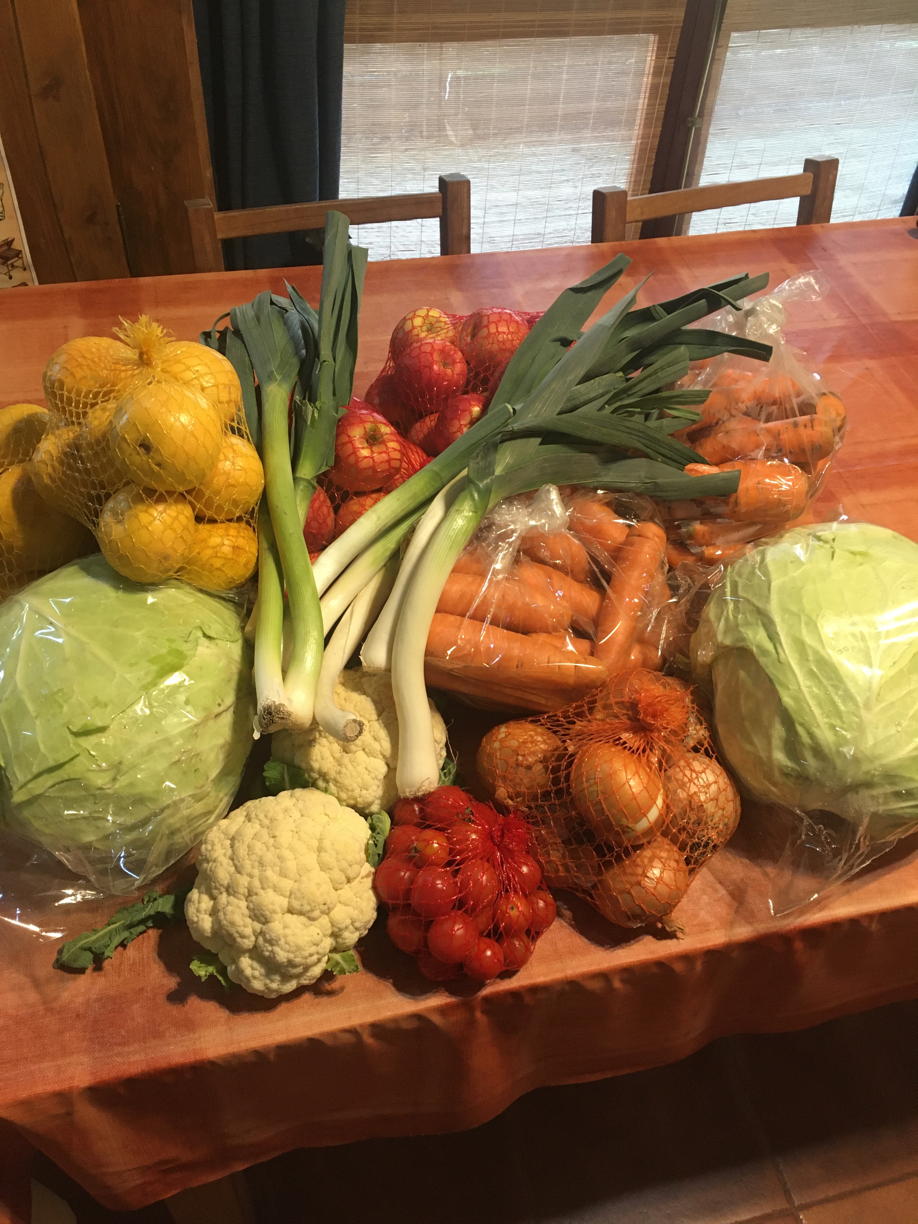 4 kg Grapefruit, 1 kg Lauch, 6 kg Äpfel, 6 kg Karotten, 6,5 kg Kohl, 1,5 kg Zwiebeln, 0,5 kg Tomaten und zwei Köpfe Blumenkohl