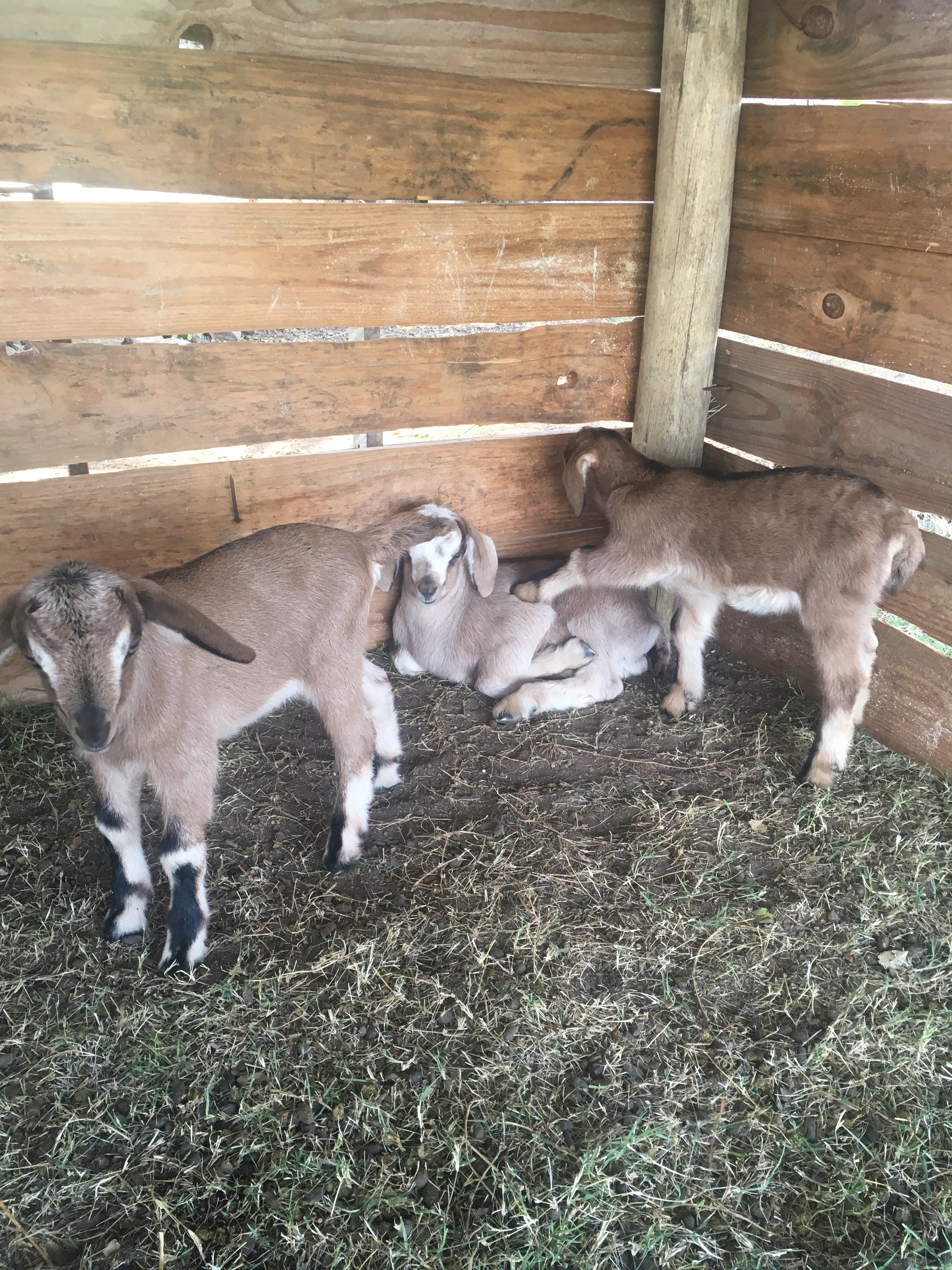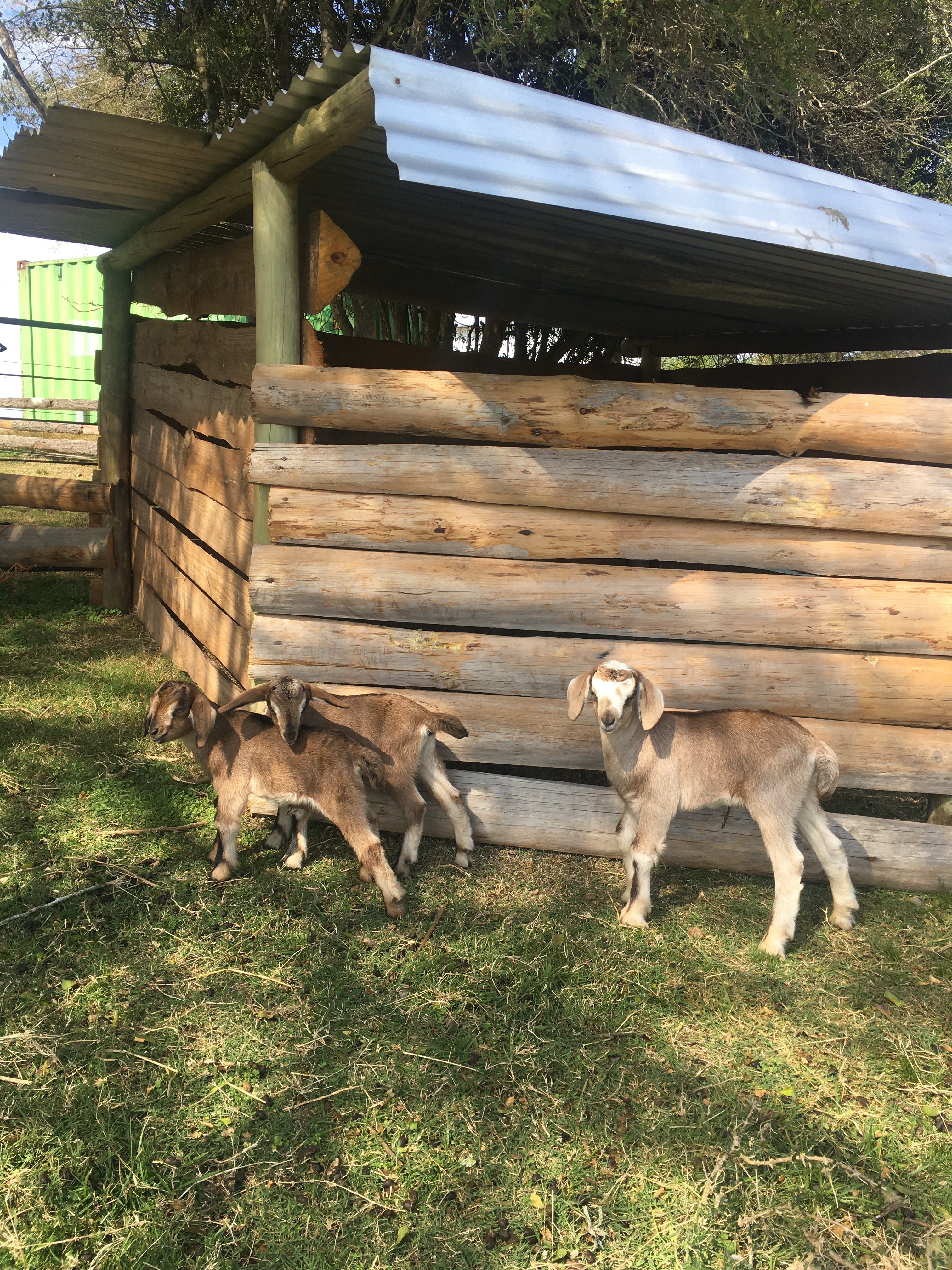 Die Zicklein sind schon einige Tage alt. Mädchen-Zwillinge und ein strammer Junge. Alle sind wohlauf. Wir haben noch drei trächtige Ziegen. Da wird der Nachwuchs auch nicht mehr lange auf sich warten lassen. Die Ziegen mit ihren Babies machten bisher noch nie Probleme. Solange sie die ersten drei Wochen auf einer relativ kleinen Weide zusammen sind und sich dadurch nicht verlieren können, klappt das alles ohne viel Tamtam.