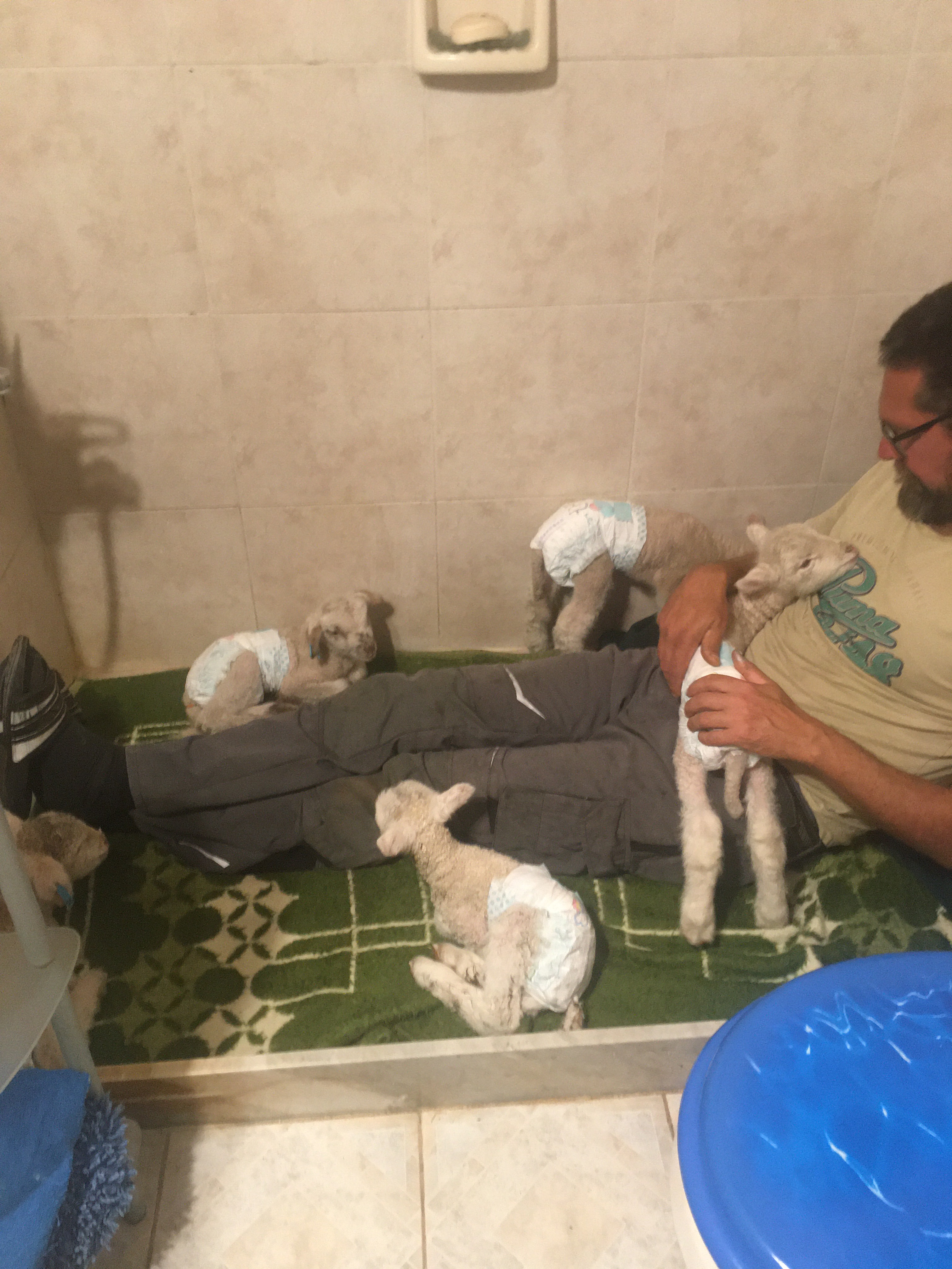 Unsere Lämmer bekamen ihre Milchflasche heute mit reichlicher Verspätung. Alles ist heute Abend aus dem Ruder geraten. Hoffentlich lässt sich das meiste morgen wieder gerade biegen!!