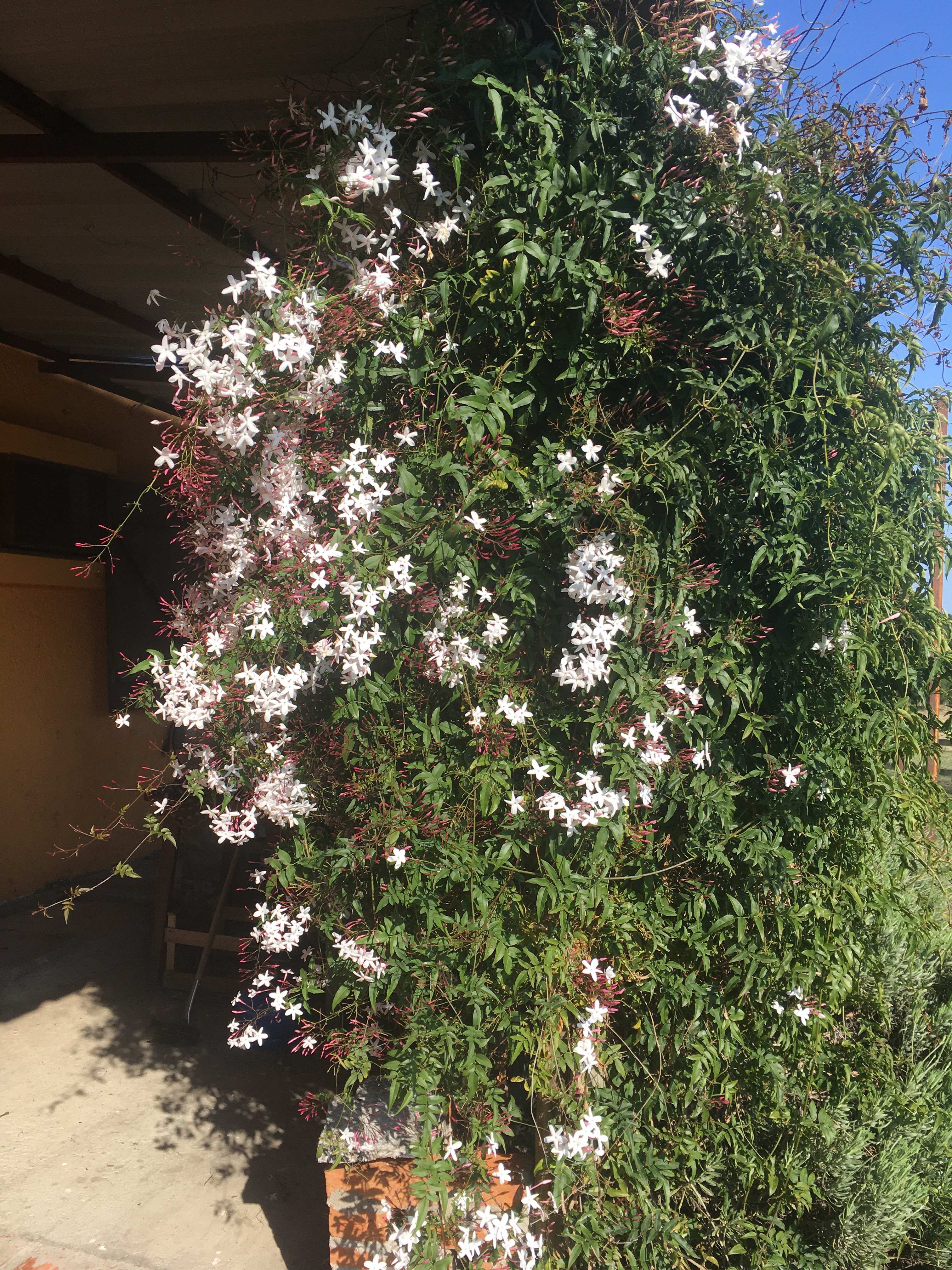 Am Hintereingang blüht der Jasmin und verbreitet seine Duftwolken im gesamten Park. Die Wäsche, die nur wenige Meter entfernt auf der Leine zum Trocknen hängt, wird nun sanft einparfümiert.