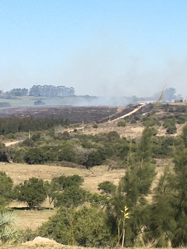 Vor zwei Wochen musste ganz in unserer Nähe die Feuerwehr anrücken. Etwa einen Kilometer Luftlinie entfernt sprang das Feuer, das ein Bauer zur Säuberung seines Ackers gelegt hatte, im heftigen Wind über den Schotterweg und setzte das Nachbargrundstück in Brand. Routinearbeit für die Feuerwehr. Die hatten den Flächenbrand relativ schnell unter Kontrolle.