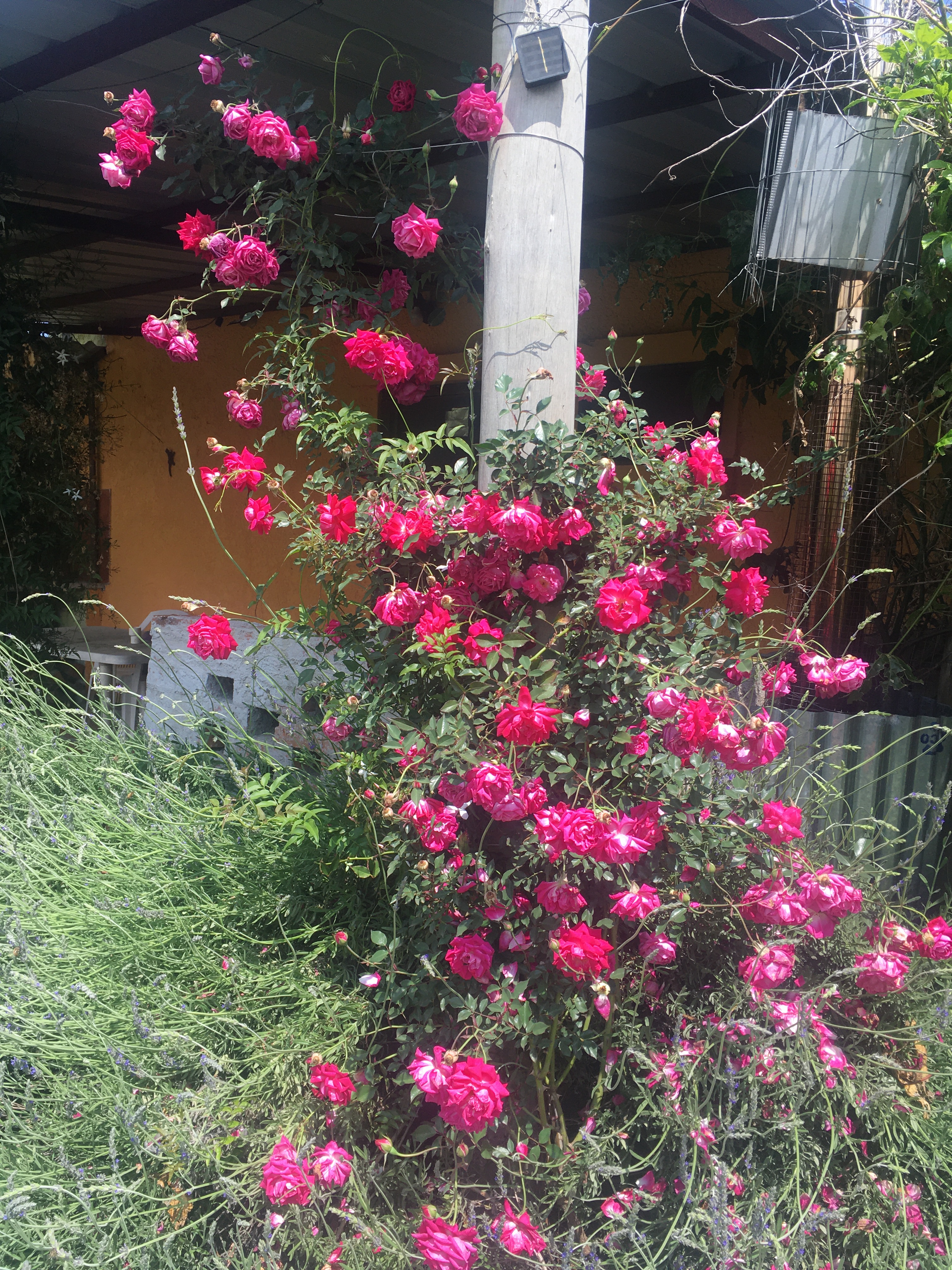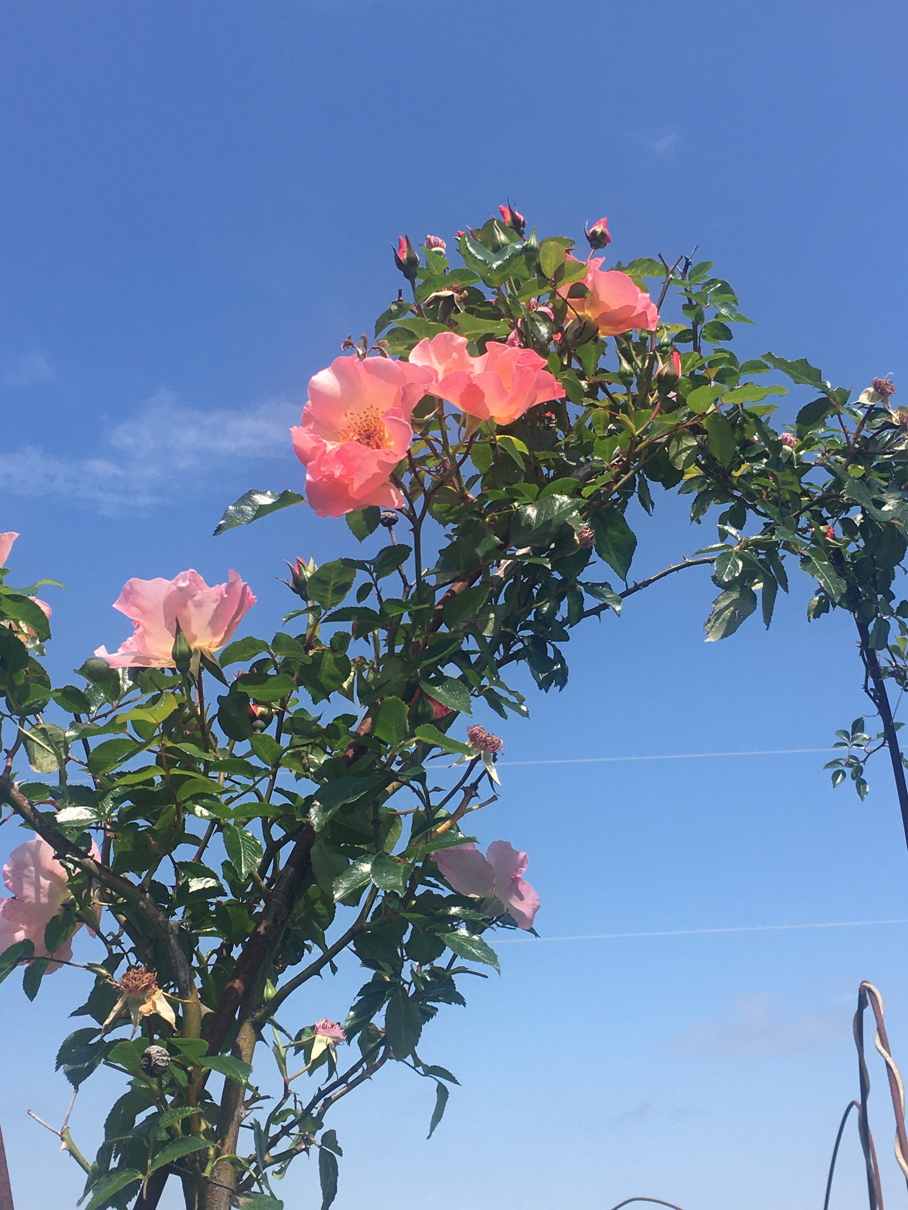 Die Kletterrosen an der hinteren Terrasse blühen schon seit einigen Tagen.