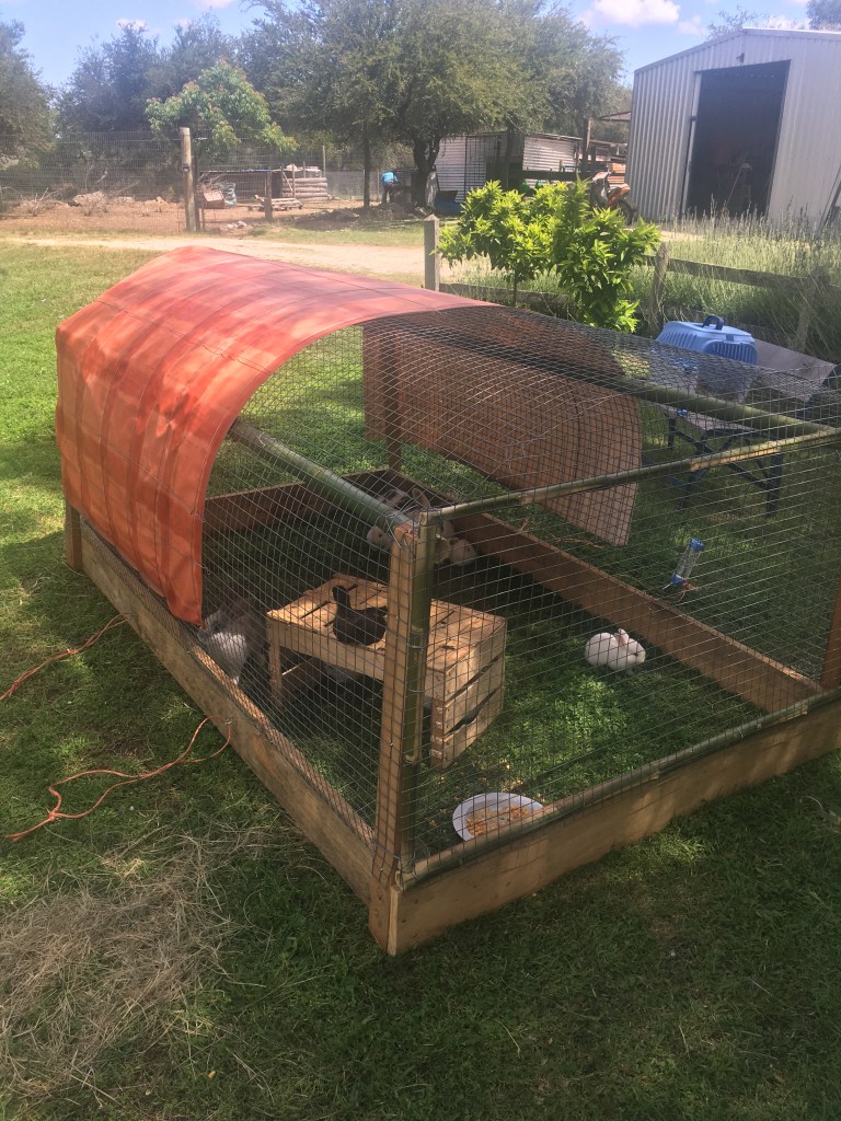 Im Internet suchten wir nach Möglichkeiten einer Behausung für die Hasen und wurden fündig. Der transportable Käfig wurde nachgebaut und hat sich bisher gut bewährt. Die Tiere haben immer frisches Gras und können auch über Nacht draußen bleiben.