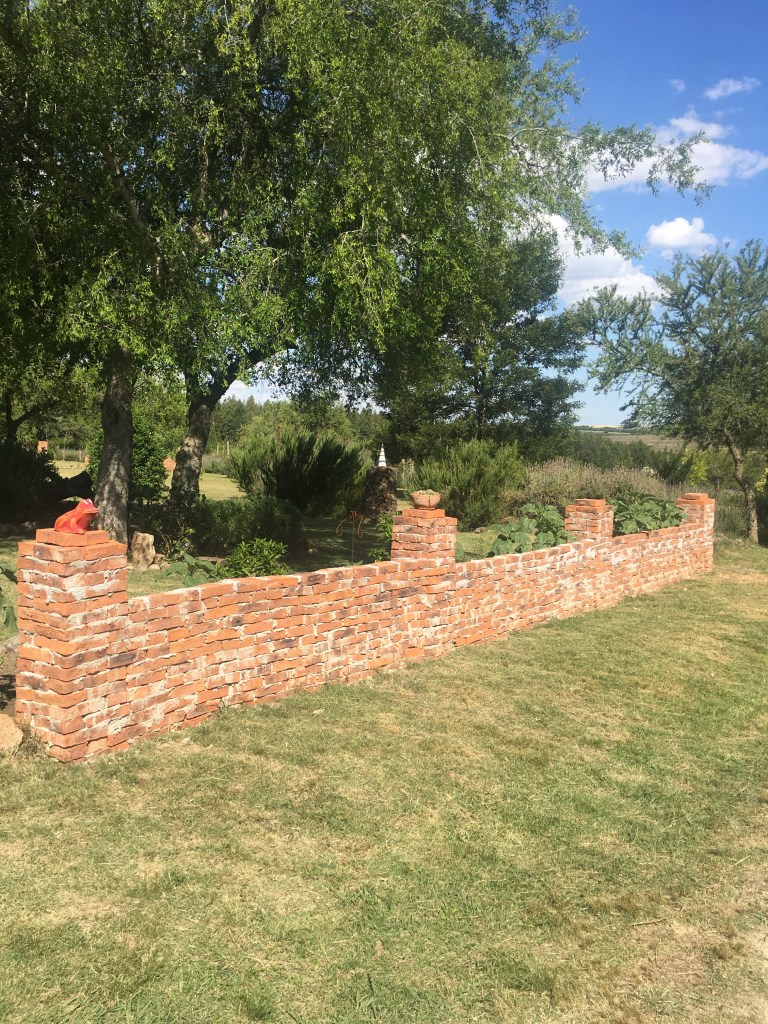 Wir haben unsere erste große Mauer fertiggestellt. Unübersehbar steht sie am Eingang zum Park und hat den Blickwinkel komplett verändert. Es ist schon erstaunlich. Jetzt steht sie da, als ob sie sich schon immer dort befunden hätte und sofort haben wir neue Ideen für weitere Bauwerke. Es hat uns Spaß gemacht und wir sind wieder mächtig stolz auf unser Werk. Nun können wir es kaum erwarten, dass der Sommer vorbei geht und wir Ende Herbst, Anfang Winter, wenn die Temperaturen wieder angenehmer und Luft und Boden wieder feuchter sind, weitere Mauern und Bögen errichten können.