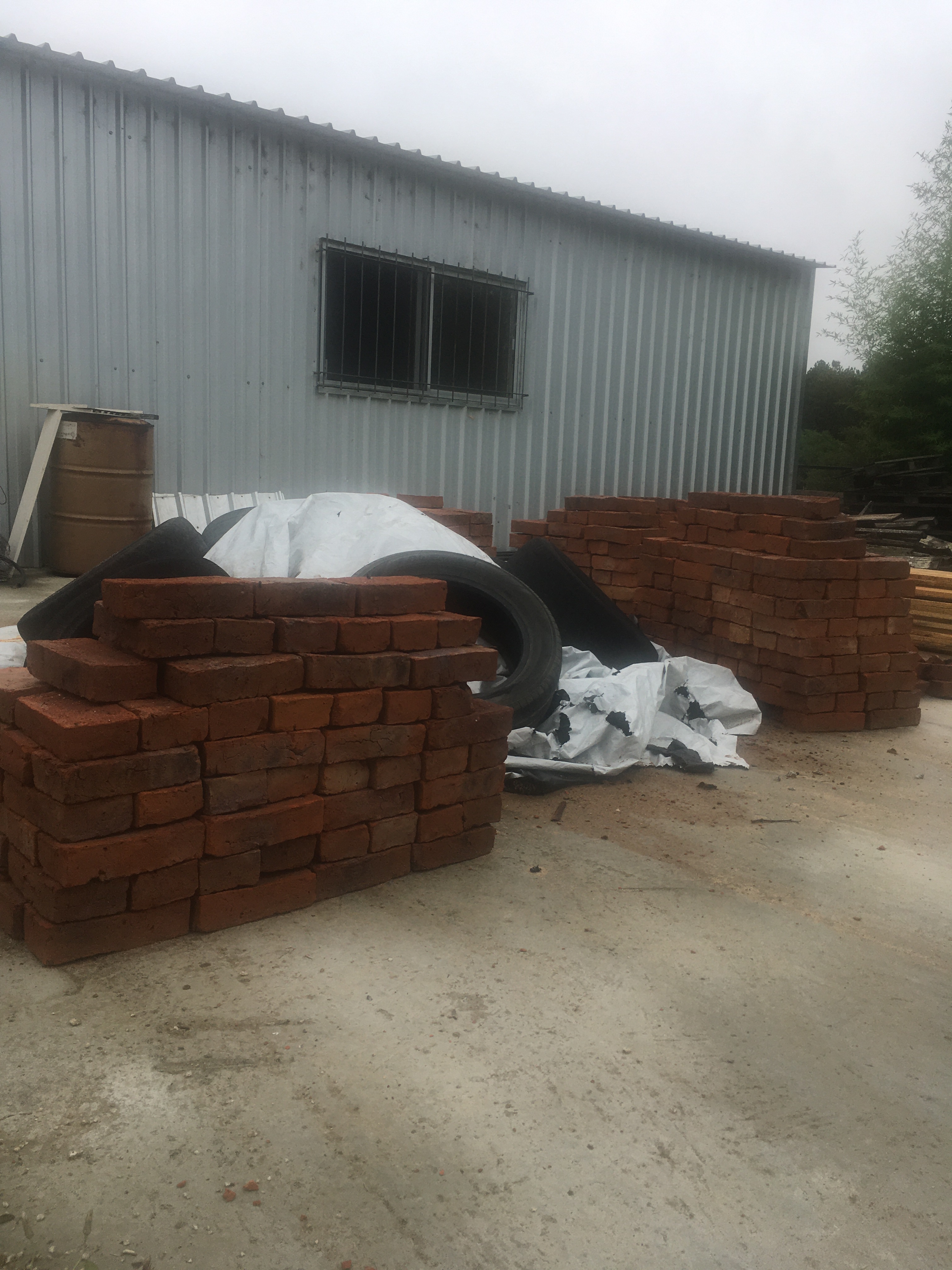 Nach getaner Arbeit fuhr der Mann zufrieden wieder zurück und wir brachten erst mal Ordnung in den großen Haufen. Wir haben die Ziegel ordentlich gestapelt, den Sand zusammengekehrt und mit einer Folie abgedeckt. Für die Nacht war Regen vorhergesagt und es hat dann auch einige Stunden ordentlich geschüttet.