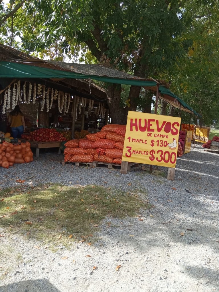 Wir haben die Entwicklung mit Interesse verfolgt und sind seit den ersten Tagen regelmäßige Kunden. Einmal die Woche machen wir uns auf den Weg dorthin, wenn wir sowieso in Tarariras zum Einkaufen sind; die zusätzlichen Kilometer lohnen sich. Verkauft wird nur Ware aus der Region. Die umliegenden Bauern bringen fast täglich ihre Ware. Was morgens noch auf dem Acker wuchs, wird am Mittag erntefrisch verkauft. Bananen, Ananas und Mangos sucht man vergeblich, denn dieses Obst wächst hier nicht. Dafür alles, was man vom deutschen Wochenmarkt auch kennt: Lauch, Kohl, Salat, Bohnen, Äpfel, Kartoffeln, Karotten und natürlich ein großes Angebot an Zitrusfrüchten. Dazu Käse, Honig und Eier, selbstgemachte Marmeladen und sauer Eingelegtes.