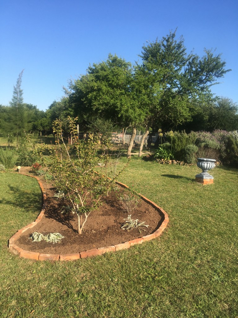 Die Mauer bildet nun, mit dem Haus im Hintergrund und dem Feigenbaum in der Mitte, unseren „Schlossplatz“. Ein runder Tisch und zwei Stühle laden zum Verweilen ein. Unser neuer Lieblingsplatz !