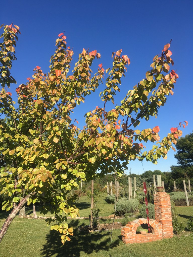 Heute Nacht hatten wir den ersten leichten Bodenfrost. In den Senken und ungeschützten Stellen bildete sich Raureif. Die Blätter der Bäume, oben der Aprikosen-Baum, färben sich bunt. Das gibt vor allem bei den Ahorn-Bäumen ein prächtiges Farbenspiel.
