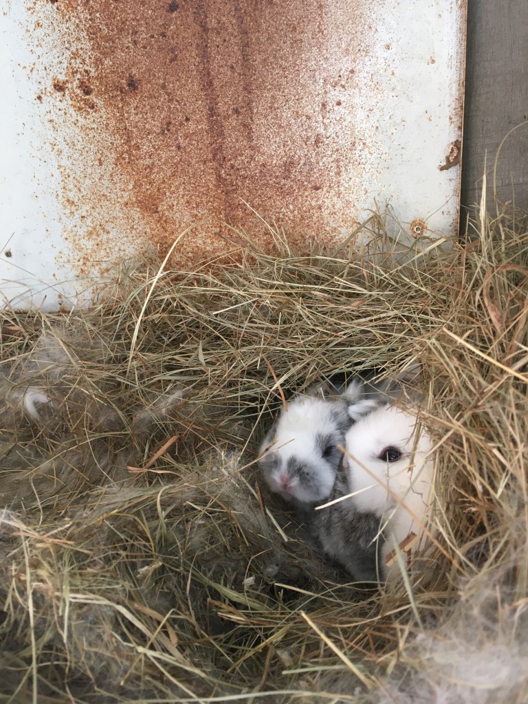Bei den Hasen hat es noch einmal Nachwuchs gegeben. Vier kleine Hoppelchen fangen gerade an, ihr Nest zu verlassen und die Welt zu erkunden.
