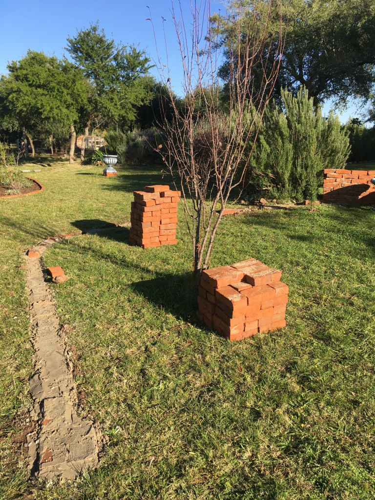 Das ehemalige Hühnergehege wird nicht mehr gebraucht, seit die Hasen und Hühner ihre separaten Behausungen bezogen haben. Eine Zeitlang diente es den Schafen als Zusatzgehege, nachdem wir den Maschendrahtzaun im Inneren entfernt hatten. Aber ganz zufrieden waren wir mit der Lösung nicht. Die etwa 250m2 waren einfach zu Schade, um sie nicht sinnvoll zu nutzen. Geschützt durch die großen Bäume und die sonnendurchflutete Lage bot sich ein neuer Obstgarten praktisch an. Hier gibt es nie Frost und auch der Wind kann keinen Schaden anrichten. Wir errichteten also dort, wo ehemals der Drahtzaun war, einen Holzzaun mit Tür zum Schafgehege. Dann erkundigten wir uns im Internet über weitere Pflanzen, die hier heimisch und vor allem auch verfügbar sind. Es kam eine ordentliche Bestellung zusammen, die unsere spanische Gärtnereibesitzerin zum Bearbeiten bekam. Für sie ist es einfacher, in den verschiedenen Baumschulen das Gewünschte zu ordern.