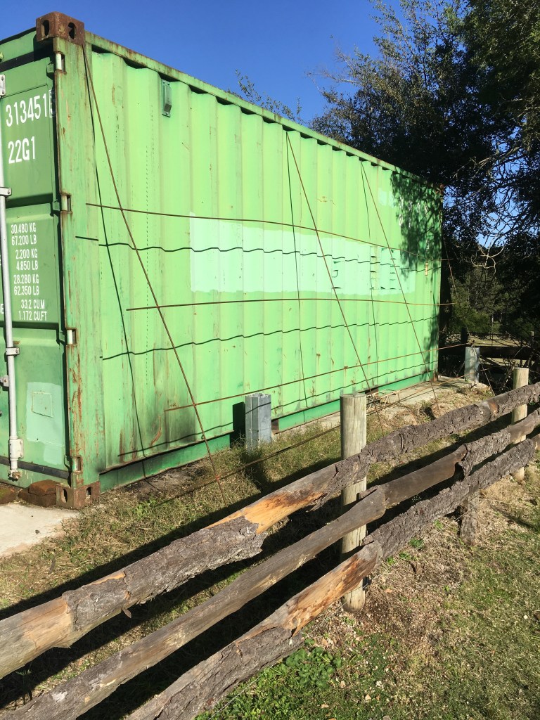 Steffen hat im Internet auch zwei neue Sorten Maracuja entdeckt, mit wunderschönen Blüten und essbaren Früchten. Die üppige Kletterpflanze soll auf der geschützten Nordseite am Container hochwachsen. Dafür wurde ein Gitter geschweißt, das wir nur noch befestigen müssen, nachdem ich den Untergrund gesäubert habe. Unter dem Container hat es sich ein Bienenvolk gemütlich gemacht, das sich nicht so einfach vertreiben lässt. Aber bis unsere Maracuja-Pflanzen angekommen sind, werden wir auch dieses Problem gelöst haben.