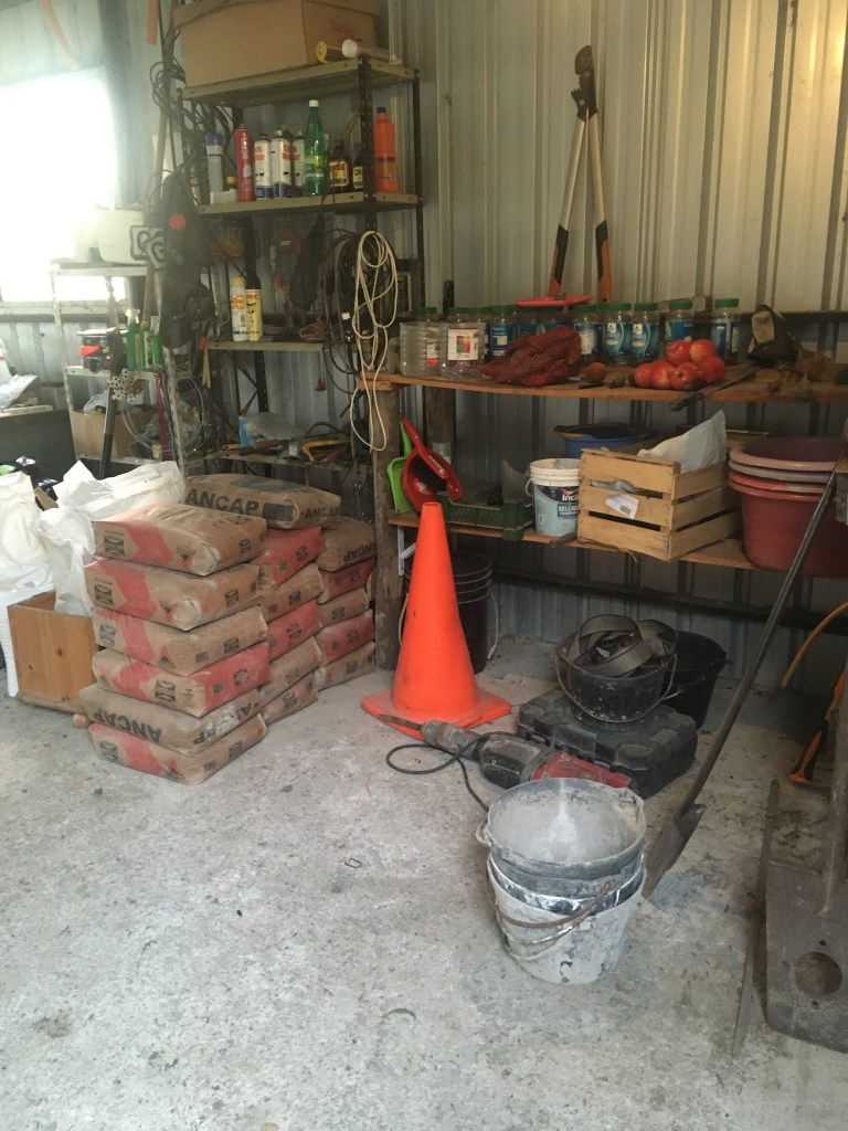 Der Zement wird trocken im Galpon gelagert, die Herren haben sich gut ausgebreitet.