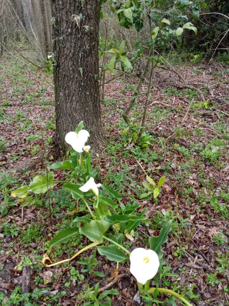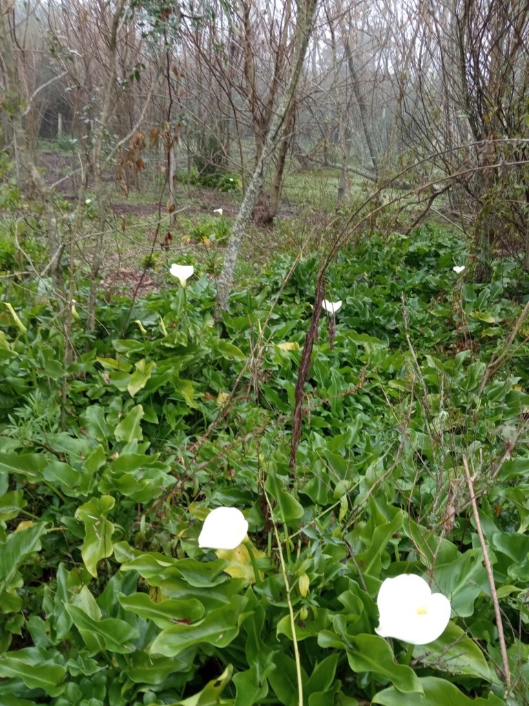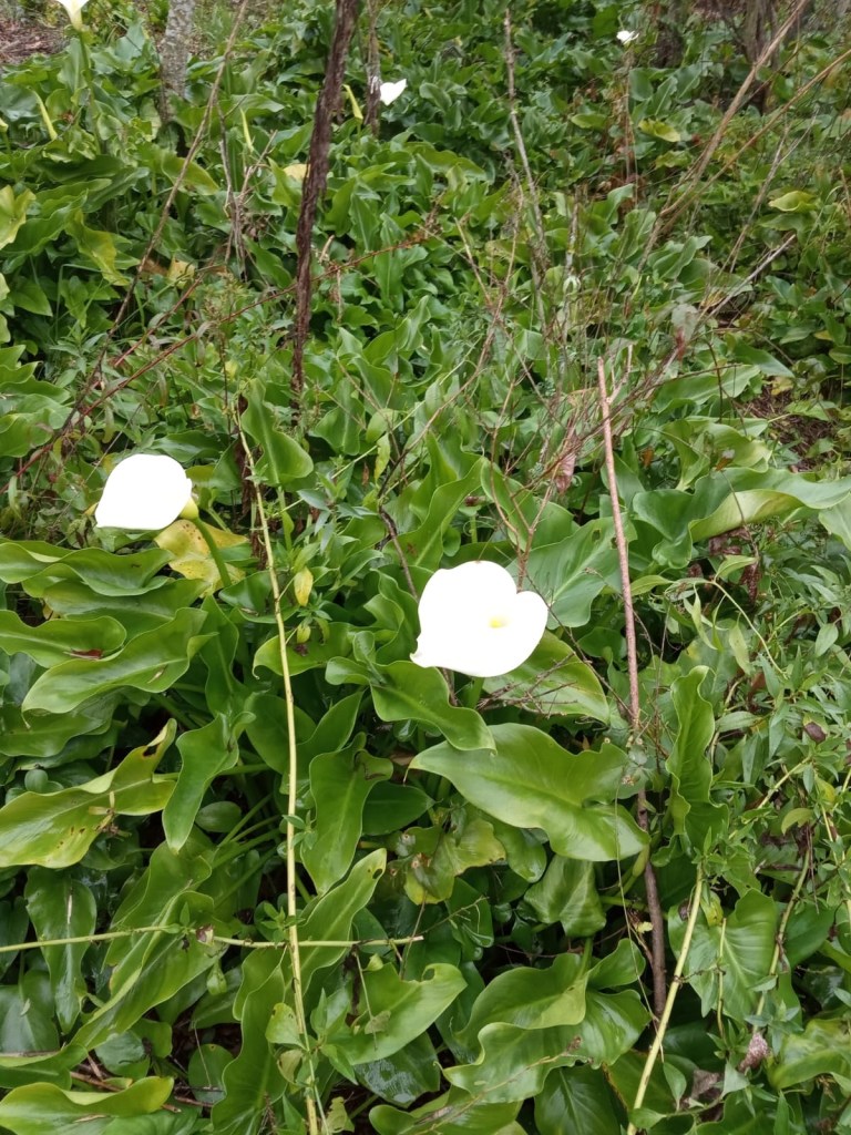 Das war kein Plastik! Der ganze Boden im Unterholz war bedeckt mit weithin leuchtenden Calla, die hier wild und wie Unkraut wucherten.