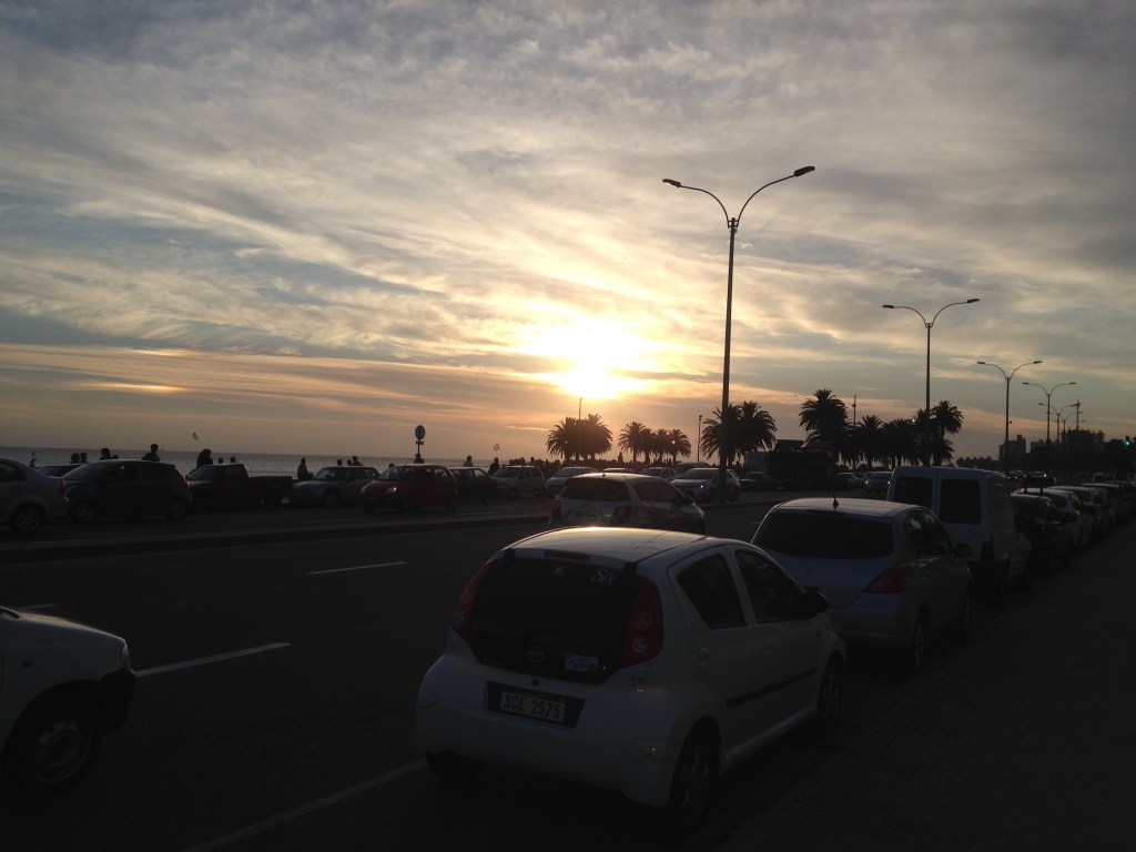In der Hauptstadt treffen sich kurz vor Sonnenuntergang tausende von Bewohnern an der Rambla. Die Sonne versinkt im Rio de la Plata mit einem unglaublichen Farbenspiel. Die Menschen sitzen am Strand oder an der Balustrade, einige sitzen im Auto am Straßenrand und wieder andere haben es sich auf ihren Klappstühlen gemütlich gemacht.