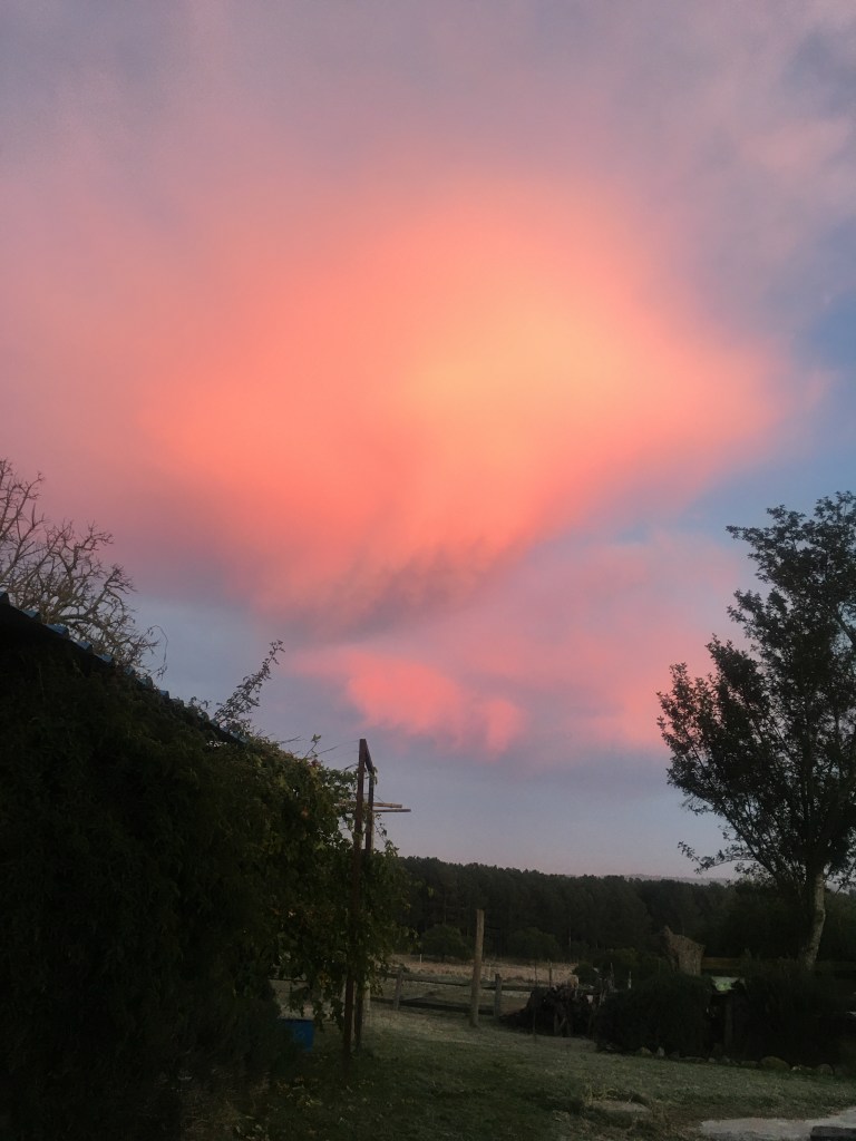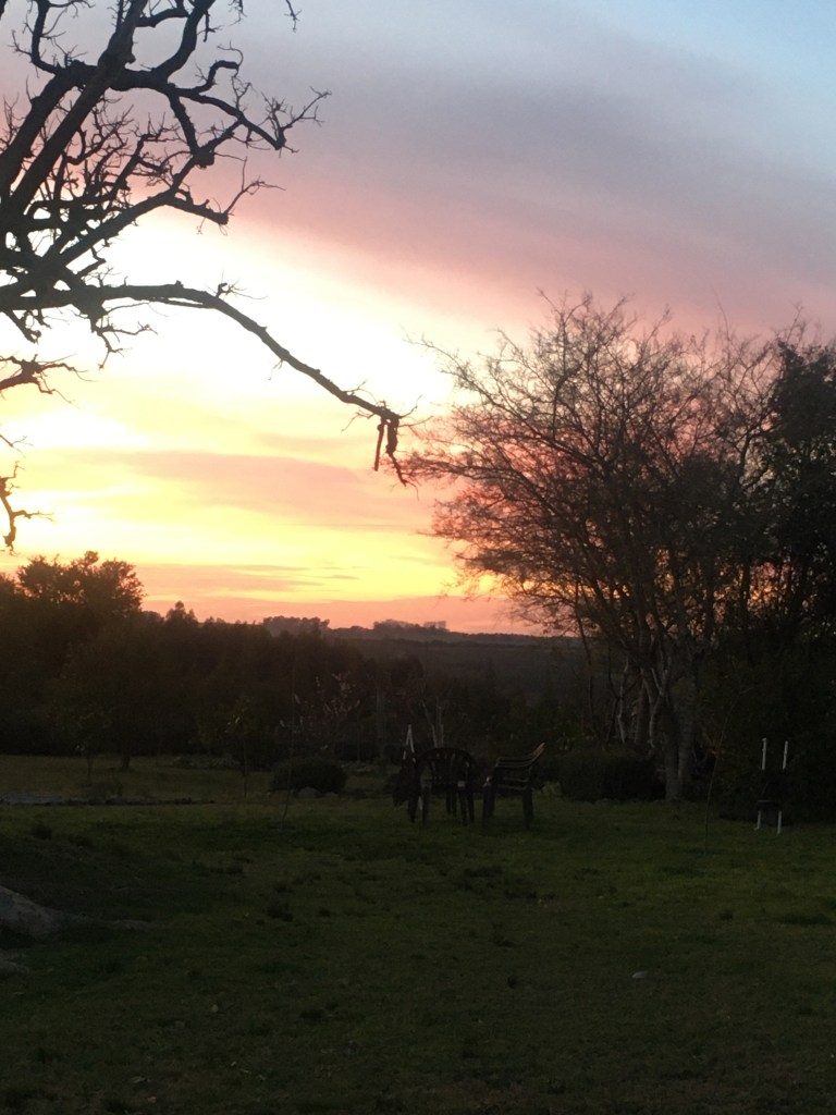Müde und gerädert machen wir uns an die Arbeit, aber wenn dann die Sonne hinter dem Eukalyptus-Wald erscheint und den Himmel verzaubert, sind wir schnell wach!