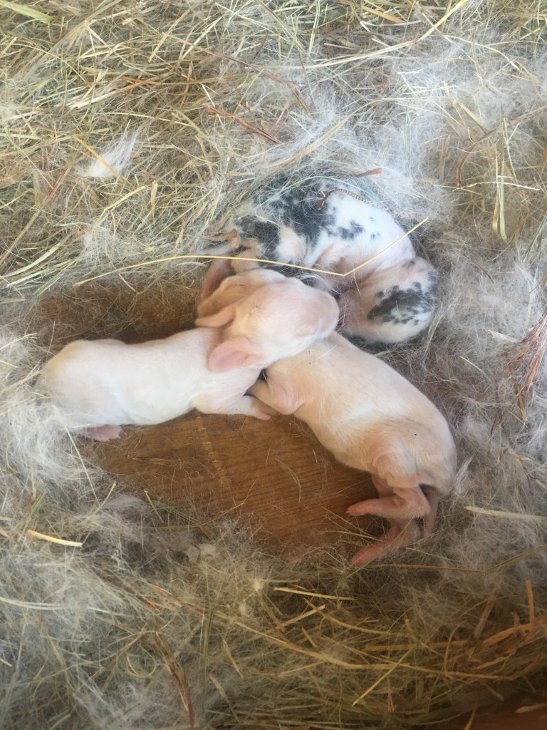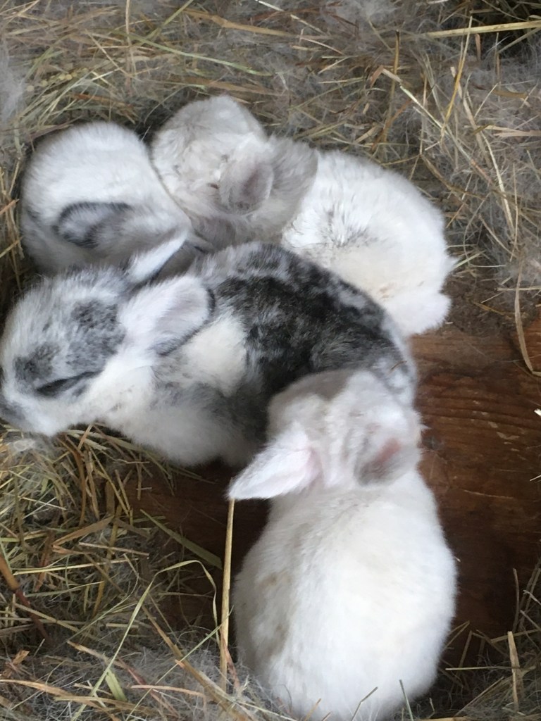 Letzten Samstag entdeckte ich im Hasengehege neun kleine Babies, die ja eigentlich nicht da sein dürften, weil ich Männlein und Weiblein getrennt hatte. Da ist mir wohl ein Fehler unterlaufen!