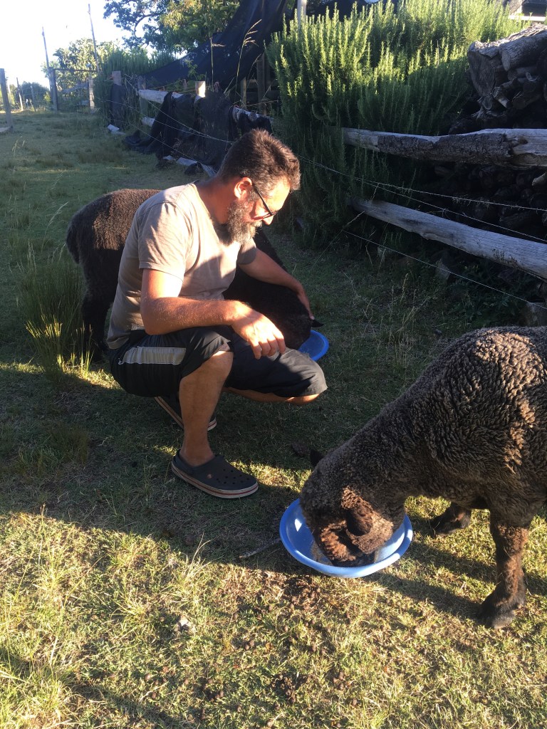 Eine der kleinen Ziegen hat sich vor vier Wochen im Zaun verfangen. Sie hing über längere Zeit mit dem rechten Hinterbein fest, dabei wurde die Blutzufuhr unterbrochen. Der Fuß war verkrüppelt und nicht mehr zu retten. Aber die Ziegen sind zäh. Das Zicklein arrangierte sich mit dem kaputten Bein und sprang behände wie ihre Geschwister über Stock und Stein. Allerdings war der Unterschenkel inklusive Knochen kaputt. Er starb mit der Zeit ab. Gestern, während eines ziemlichen Gerangels zwischen den Ziegen, reichte ein Hieb mit den Hörnern einer Ziege und der Unterschenkel wurde abgetrennt. Es passierte glücklicherweise während wir in der Nähe waren. Wir hatten die Ziegenherde gerade von der Weide geholt und ins Schlafgehege gesperrt, als sie sich in die Haare gerieten.