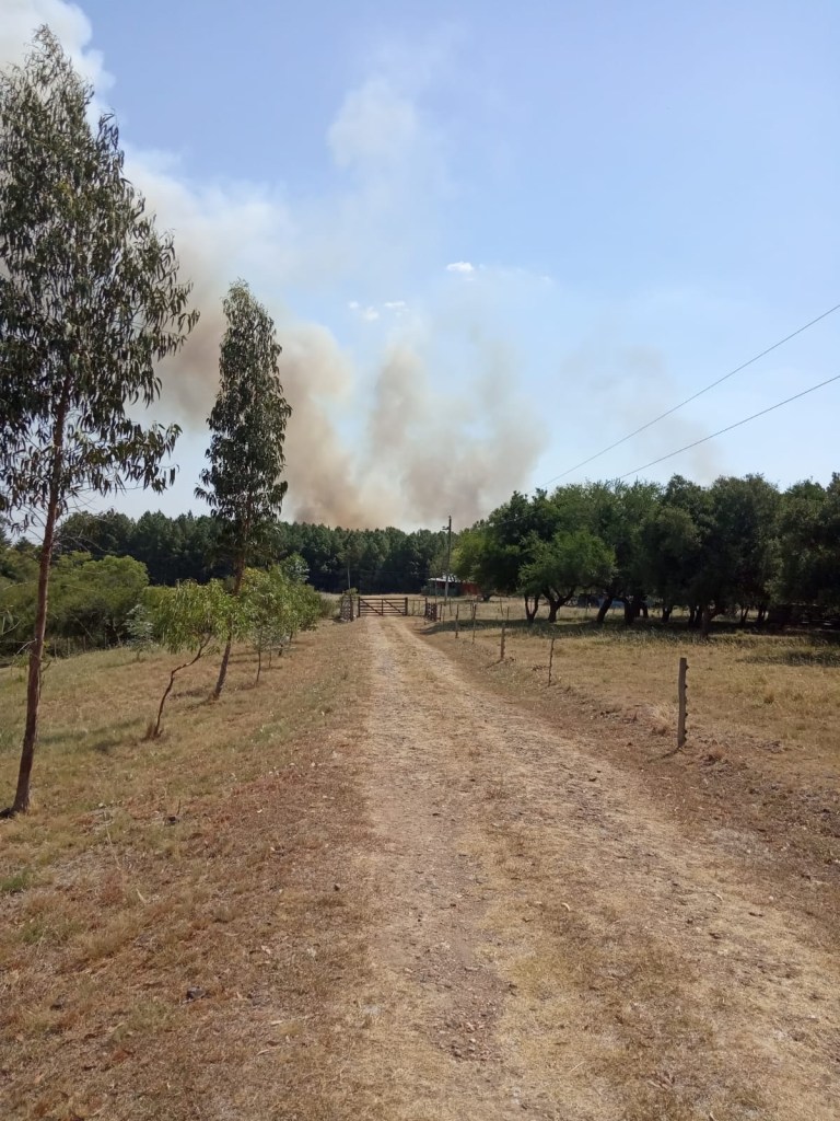 Wir eilten nach draußen, um nachzusehen und entdeckten die Rauchwolke. Schleunigst machte ich mich auf den Weg, die Nachbarn zu informieren. Die 700 Meter legte ich im Laufschritt zurück, das ging am schnellsten. Ich klopfte sie aus dem Bett, denn auch sie hatten sich zur Mittagsruhe hingelegt. Von deren Haus hatte ich einen guten Blick auf den Brandherd. Das sah nicht gut aus. Hohe Flammen schlugen schon aus dem Wald und kamen schnell voran. Also rannte ich wieder nach Hause und begann unseren Notfall-Plan abzuarbeiten. Steffen hatte unterdessen das Tor zum Campo geöffnet, dass die Feuerwehr leichten Zugang hat. Dann ging alles Hand in Hand. Es zahlte sich nun aus, dass wir uns für den Fall der Fälle einen Plan zurecht gelegt hatten.
