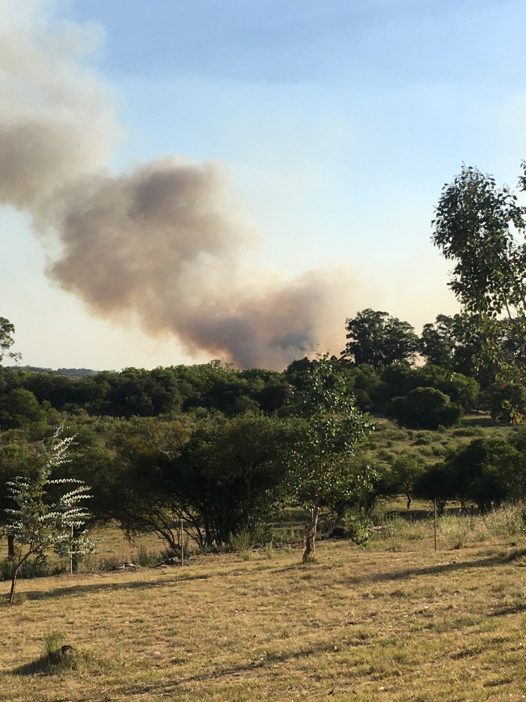 1. Die Eukalyptus-Bäume sind weniger das Problem. Die brennen „nur“ untenrum. ( das eine Foto von Daniel zeigt einen Eukalyptus-Wald. Die Bäume stört ein Feuer wenig, die treiben wieder aus und wachsen weiter) Das große Problem bei uns momentan ist der Kiefernwald des Nachbarn.