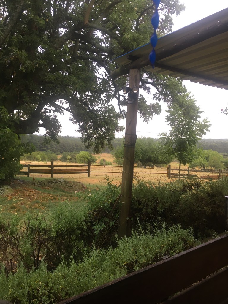 Ich weiß, es ist nur ein Bild vom Regen, den ihr in Deutschland mehr als genug ertragen müsst. Aber für uns war es ein Geschenk des Himmels gestern, als nördlich von uns ein weiteres Feuer ausbrach, weit genug weg, dass keine Gefahr bestand, aber nah genug, um den Rauch abzukriegen, der in den Augen brannte und den Hals reizte!