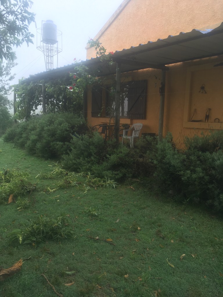 Von einem der Ombú-Bäume brach ein großer Ast und krachte zuerst auf das Dach der Veranda und danach in die Lavendelhecke. Zu zweit haben wir den mehr als drei Meter langen Ast entfernt. Jetzt freuen sich die Schafe über das zusätzliche Futter.