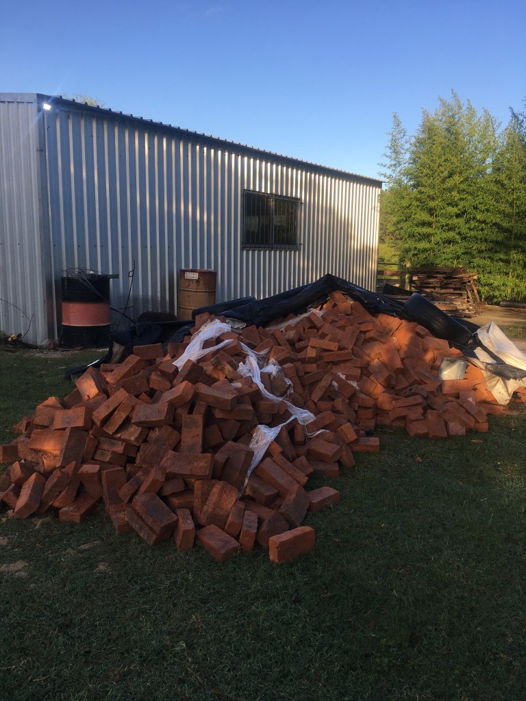 Die Qualität der Ziegel ist überraschend gut, sehr gut sogar. Es ist beim Abladen eigentlich nichts zu Bruch gegangen. Das wird eine ziemliche Hämmerei, wenn wir für unsere Bauwerke halbe Ziegel brauchen und diese dann zurecht klopfen müssen.
