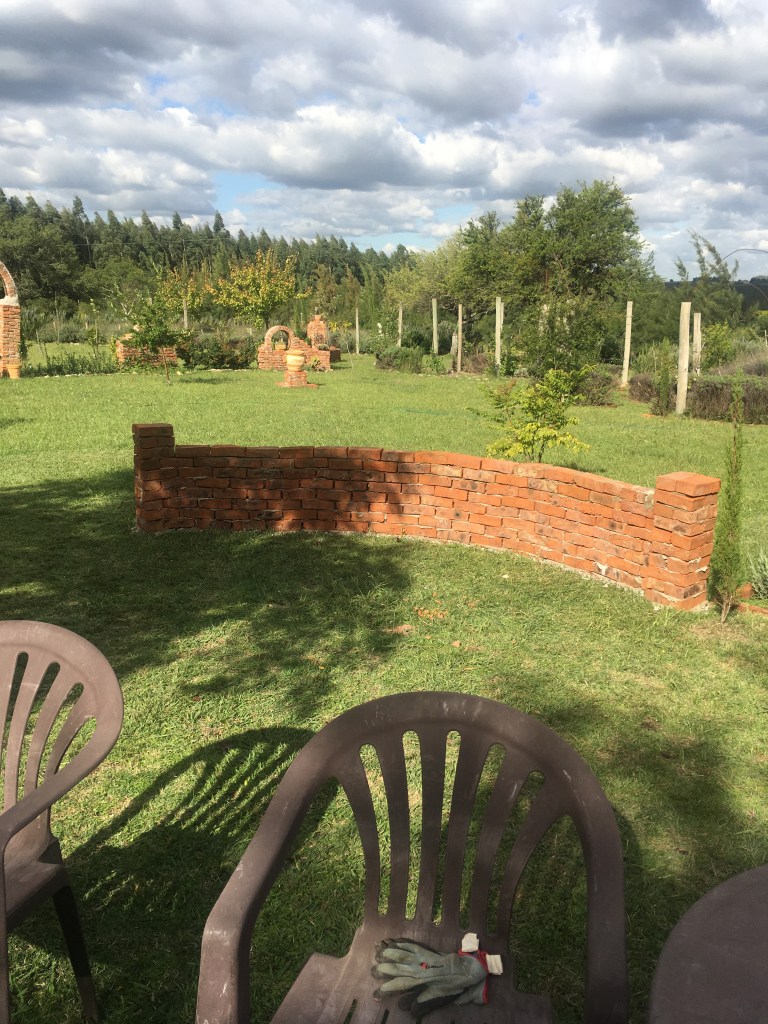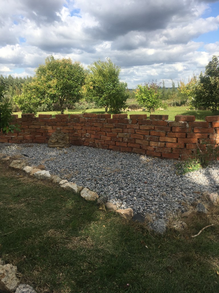 Die „chinesische Mauer“ am Asia-Garden ist vollendet. Als Abschluss bekam sie oben kleine Zinnen. Der dicke Buddha kann nun bei Sonnenaufgang im Schatten sitzen und gemütlich vor sich hin grinsen.