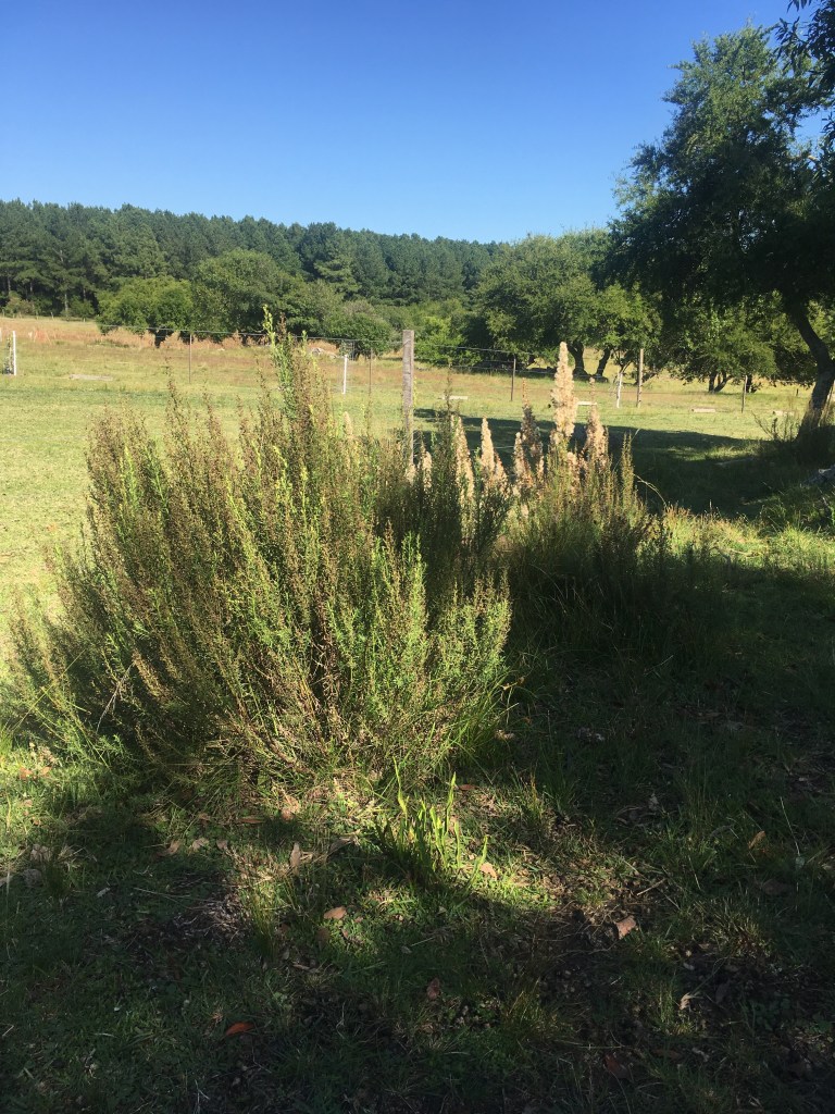 Nach dem die Tiere versorgt und auf der Weide sind und wir gefrühstückt haben, geht es auf zur Feldarbeit. Seit nunmehr sechs Jahren sind wir ständig am Säubern. Steffen sticht unermüdlich seine Disteln aus. Langsam haben wir alles im Griff. Einige Tausend Quadratmeter sind schon völlig vom Buschwerk befreit. Es ist kein englischer Rasen, aber wir gewinnen immer mehr an schöner freier Weidefläche, die von den Schafen dankbar angenommen wird.